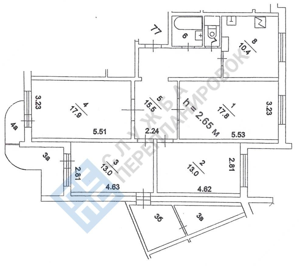 Высота потолков 2.6 м
