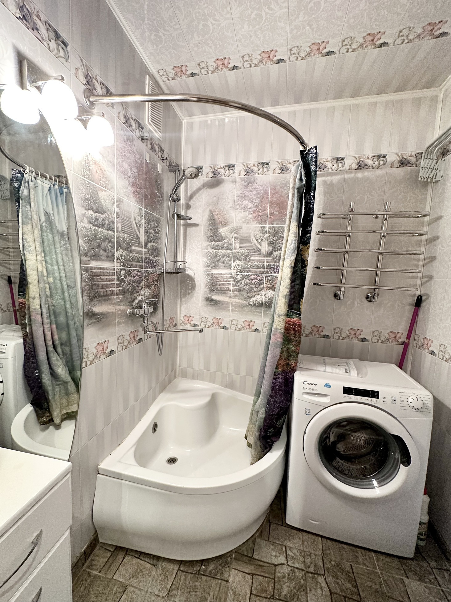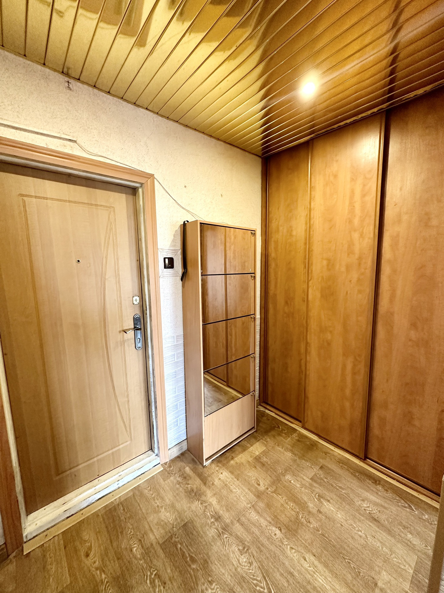 Большая кухня квадратной формы, в коридоре встроенный шкаф-купе, в комнате гардеробная комната. Санузел раздельный санузел в плитке.