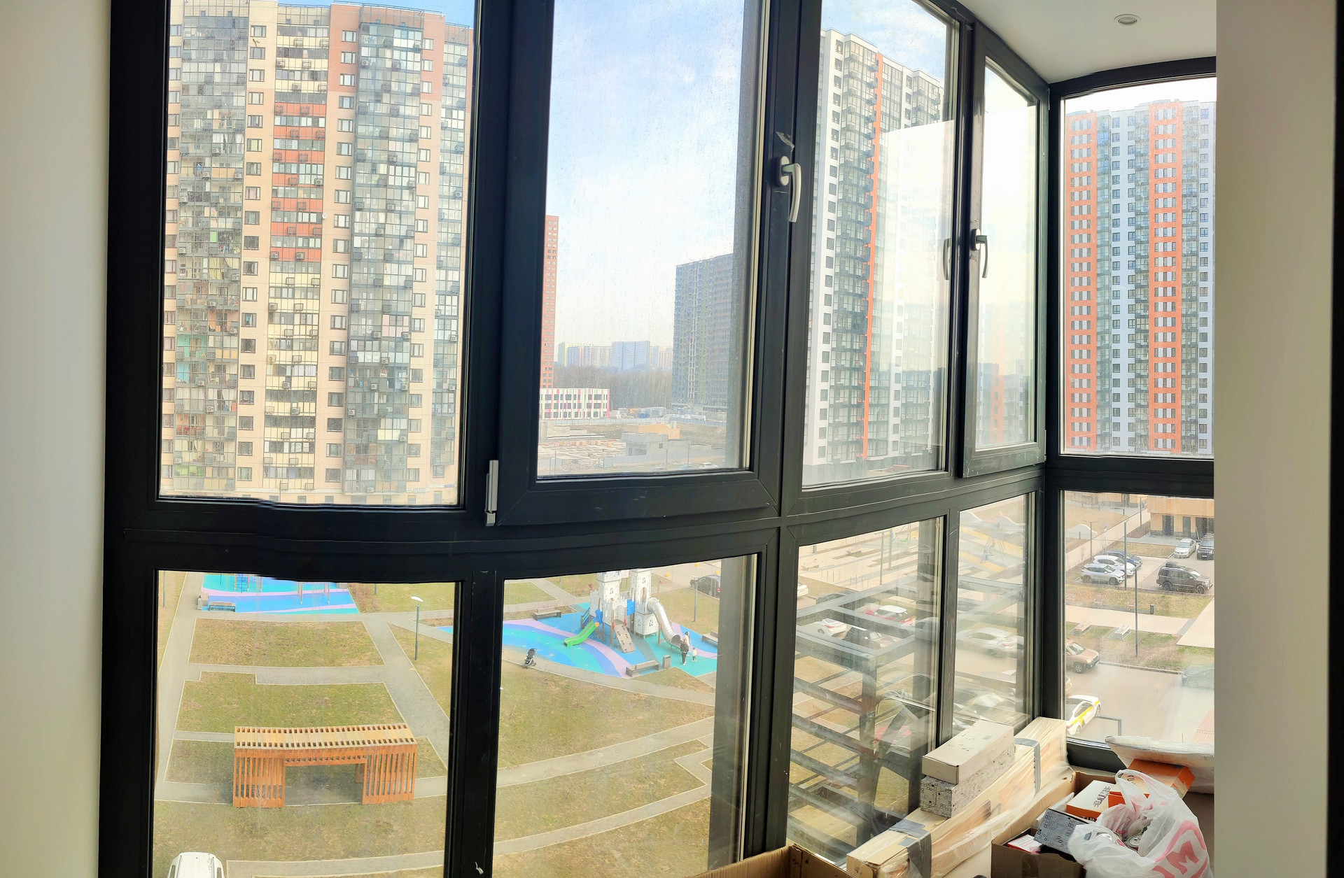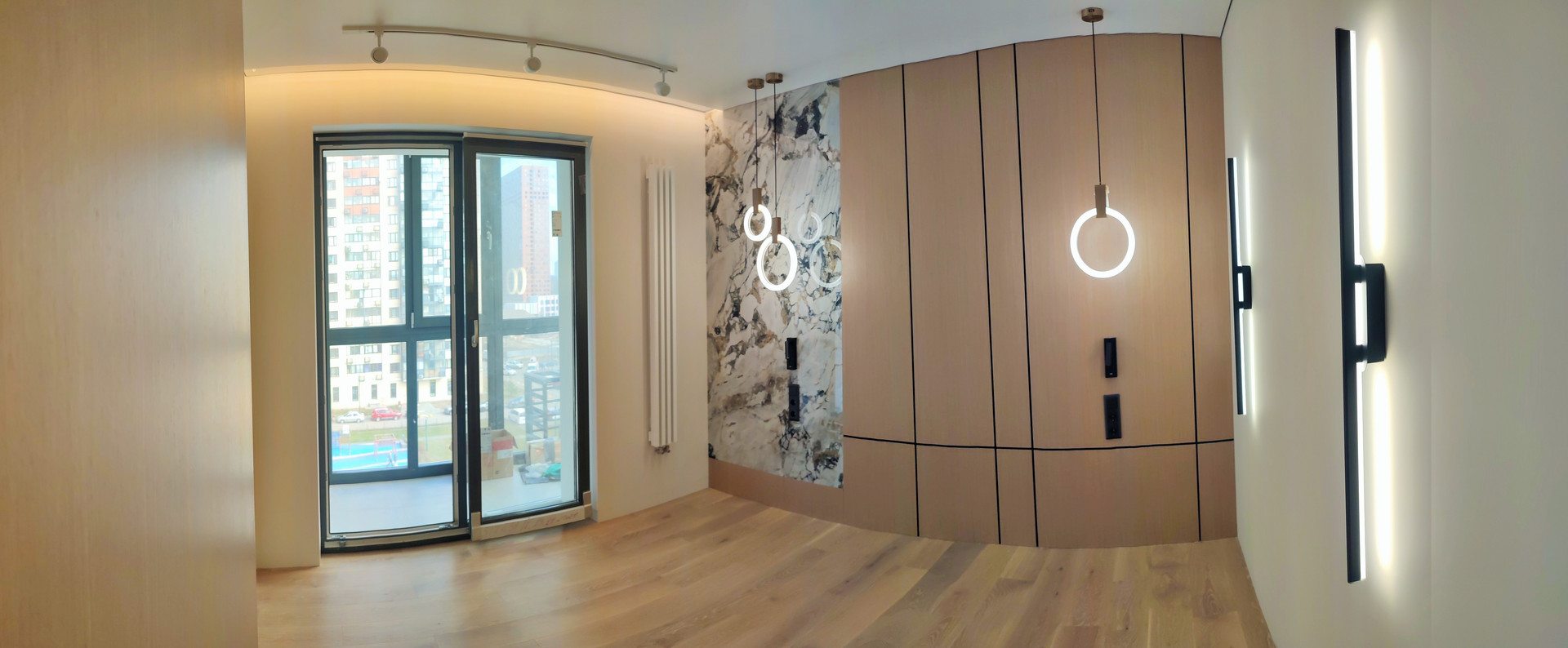 - на лоджии установлены теплые окна, с повышенной шумоизоляцией, освещение, сделана рабочая зона кабинета; установлена раздвижная система балконного блока;