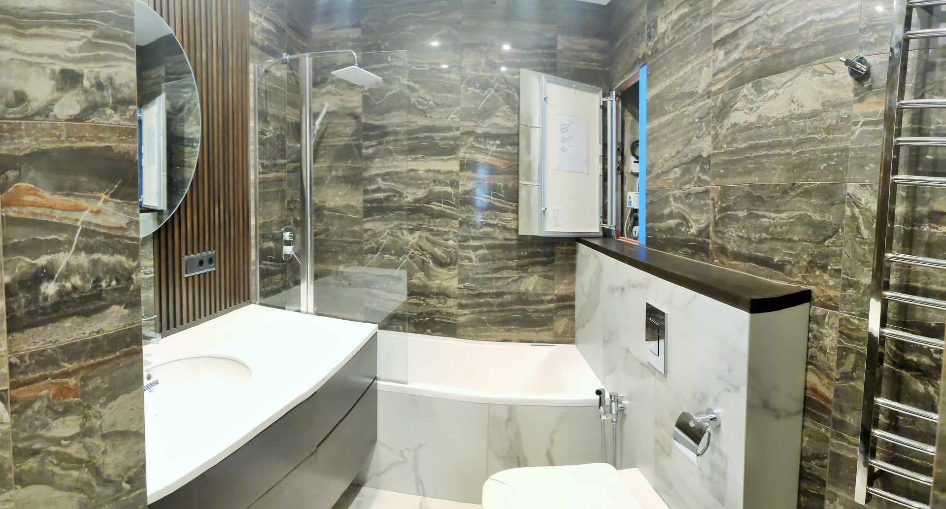 - во всех мокрых зонах квартиры выполнена гидроизоляция, установлены системы от протечек, хорошего качества запорная арматура и система водоочистки; проточный водонагреватель;