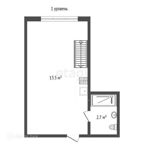 *Апартамент общей площадью 26,20м2 (1 этаж - 16,20м2, второй этаж - 10м2)