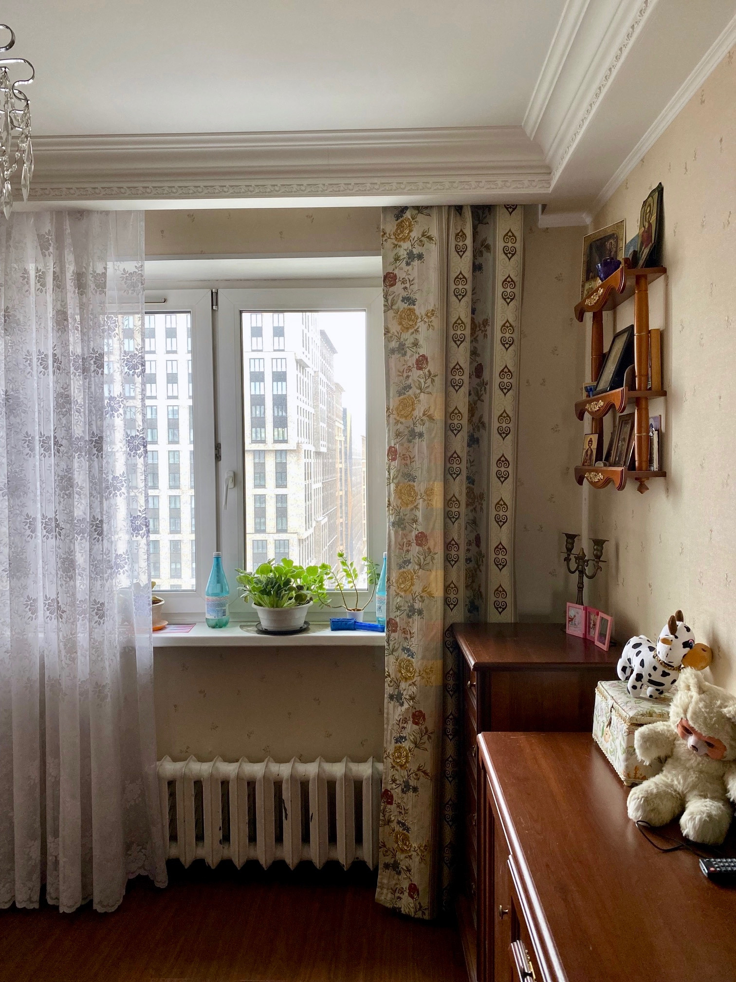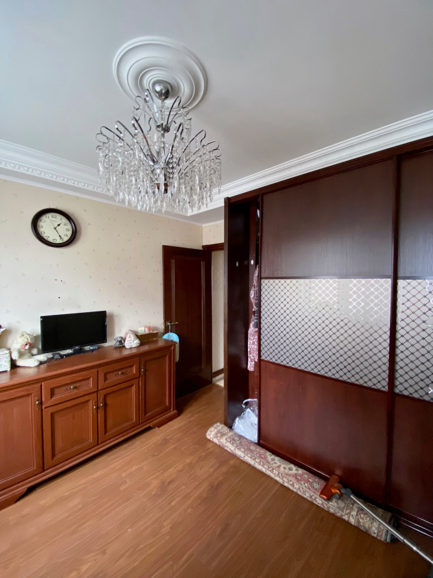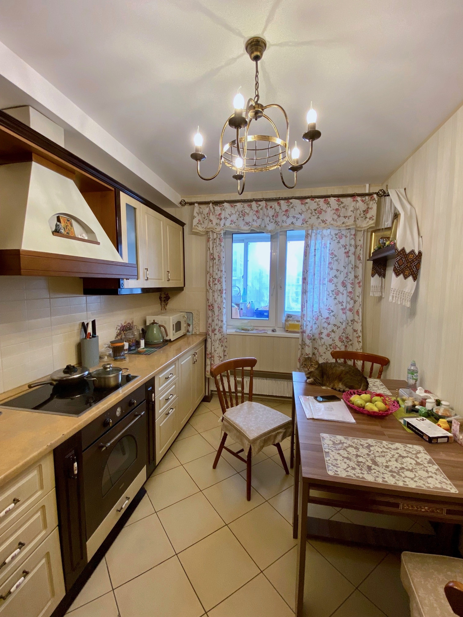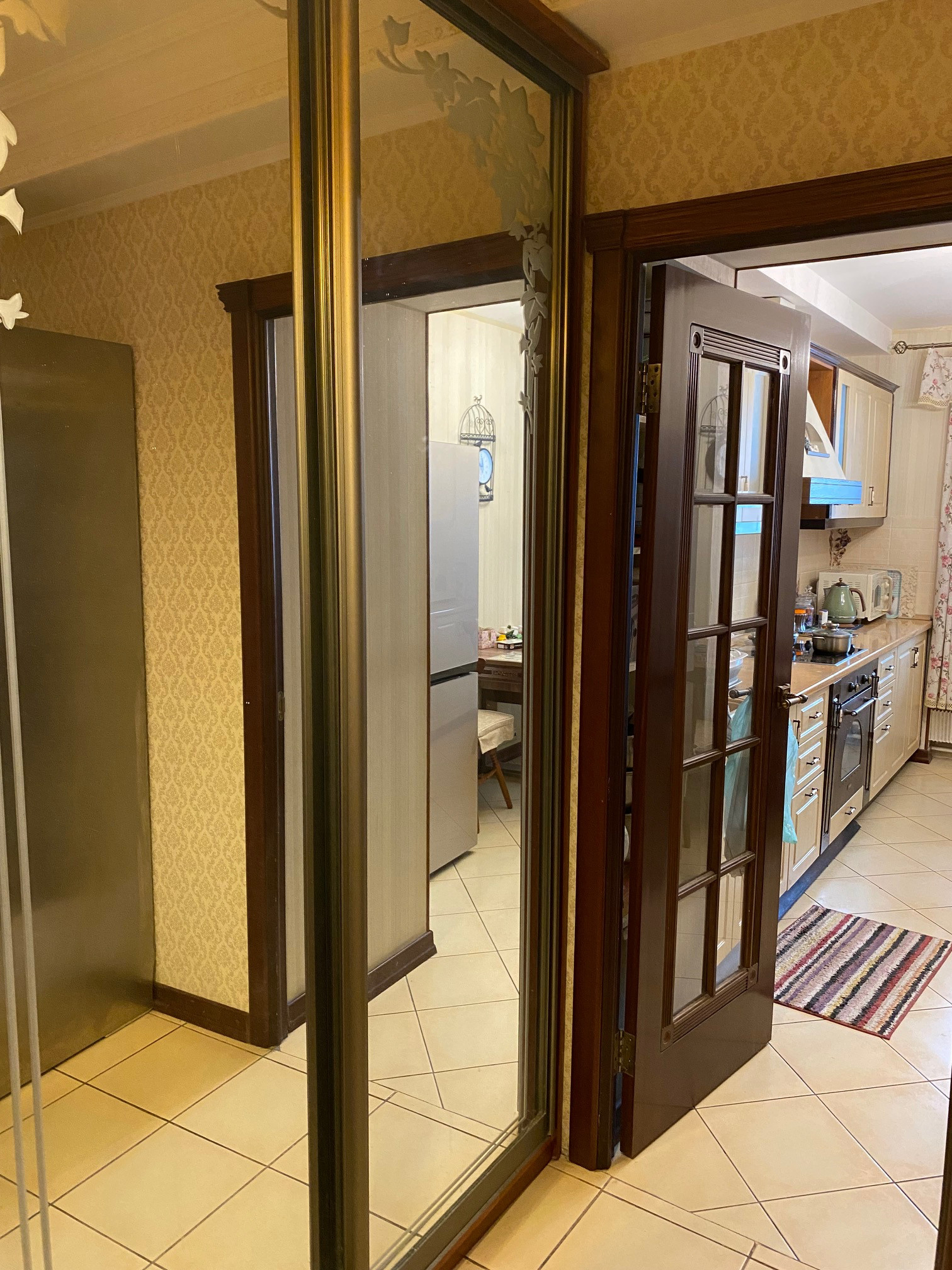 Квартира  большая, светлая, двусторонняя.  Размер комнат: 22,9-10,5-12,6 кв.м. Расположена на 10 этаже (фактически 14). Окна спальни - во двор, окна гостиной и кухни - на улицу. Вдоль гостиной и кухни - большая (6 кв.м) застекленная лоджия, которая преграждает шумы и пыль улицы, дополнительно установлены 2 кондиционера.  Большой холл. Ремонту 12 лет, но добротный, качественный требуется только косметика.  Парковка во дворе под шлагбаумом. Рядом магазины, Петровский Парк,  очень удобная транспортная доступность, до метро 800 м, рядом - остановка автобуса.  Собственность с 2010 г. (приватизация, 2 владельца).  Перепланировок нет.  Альтернатива - переезжаем в другой район.