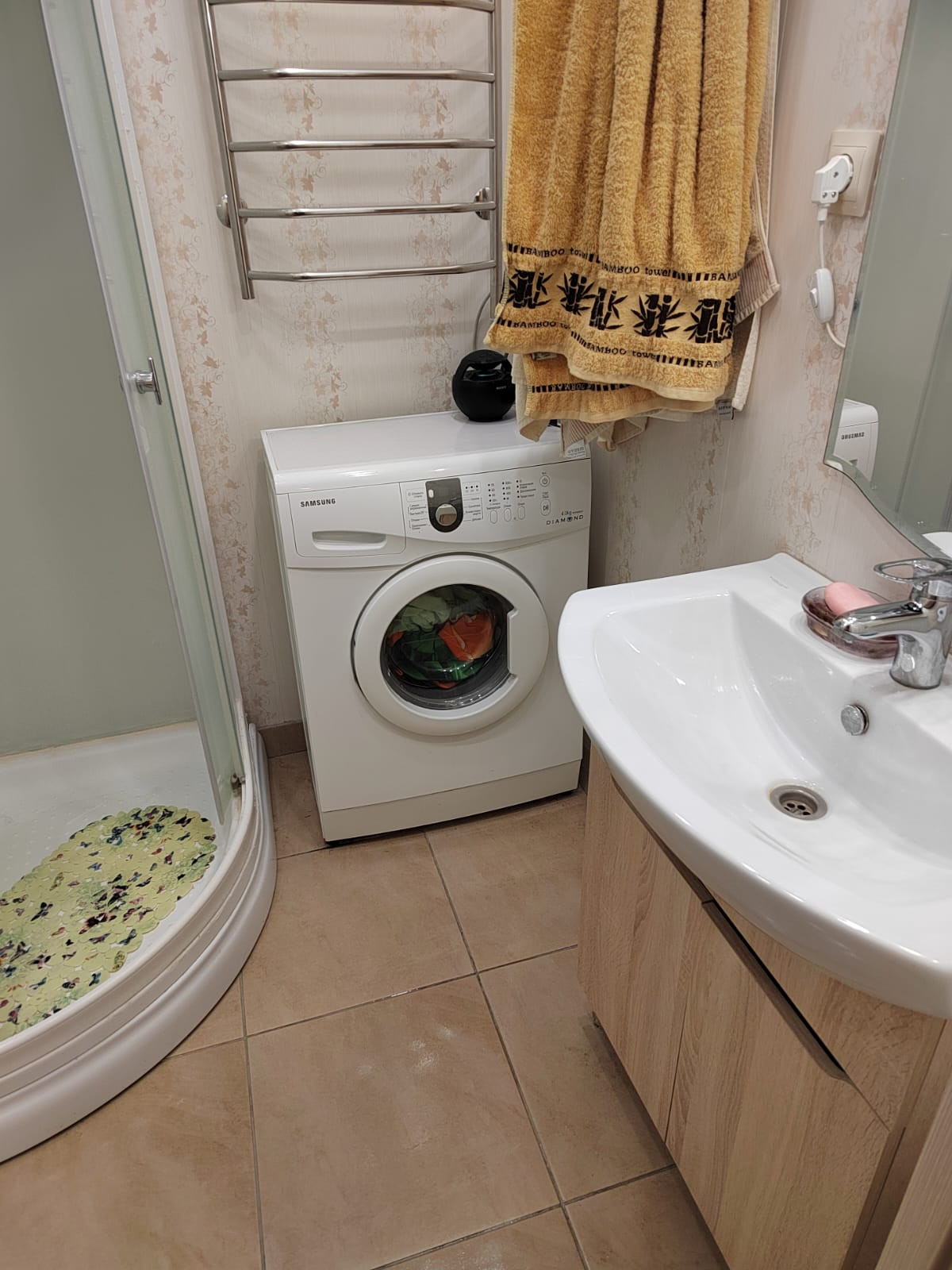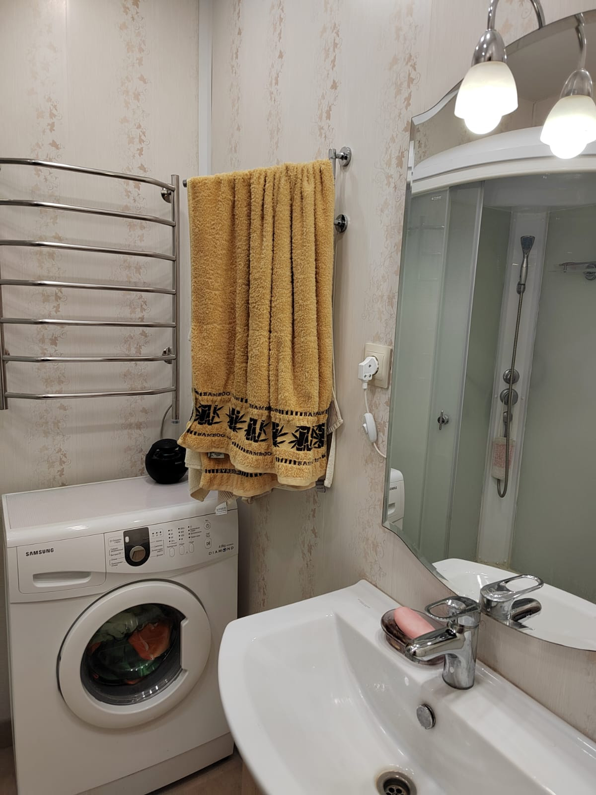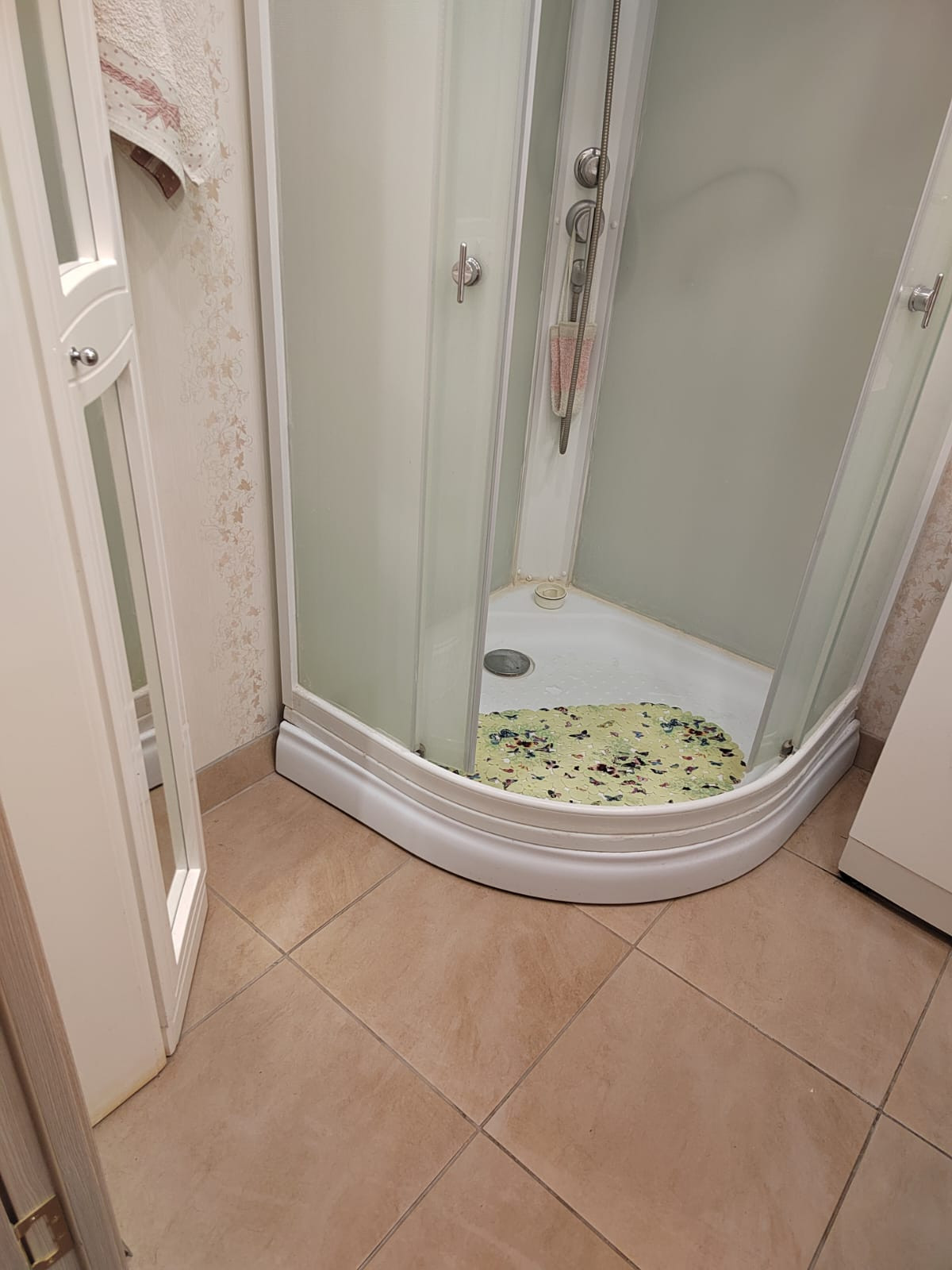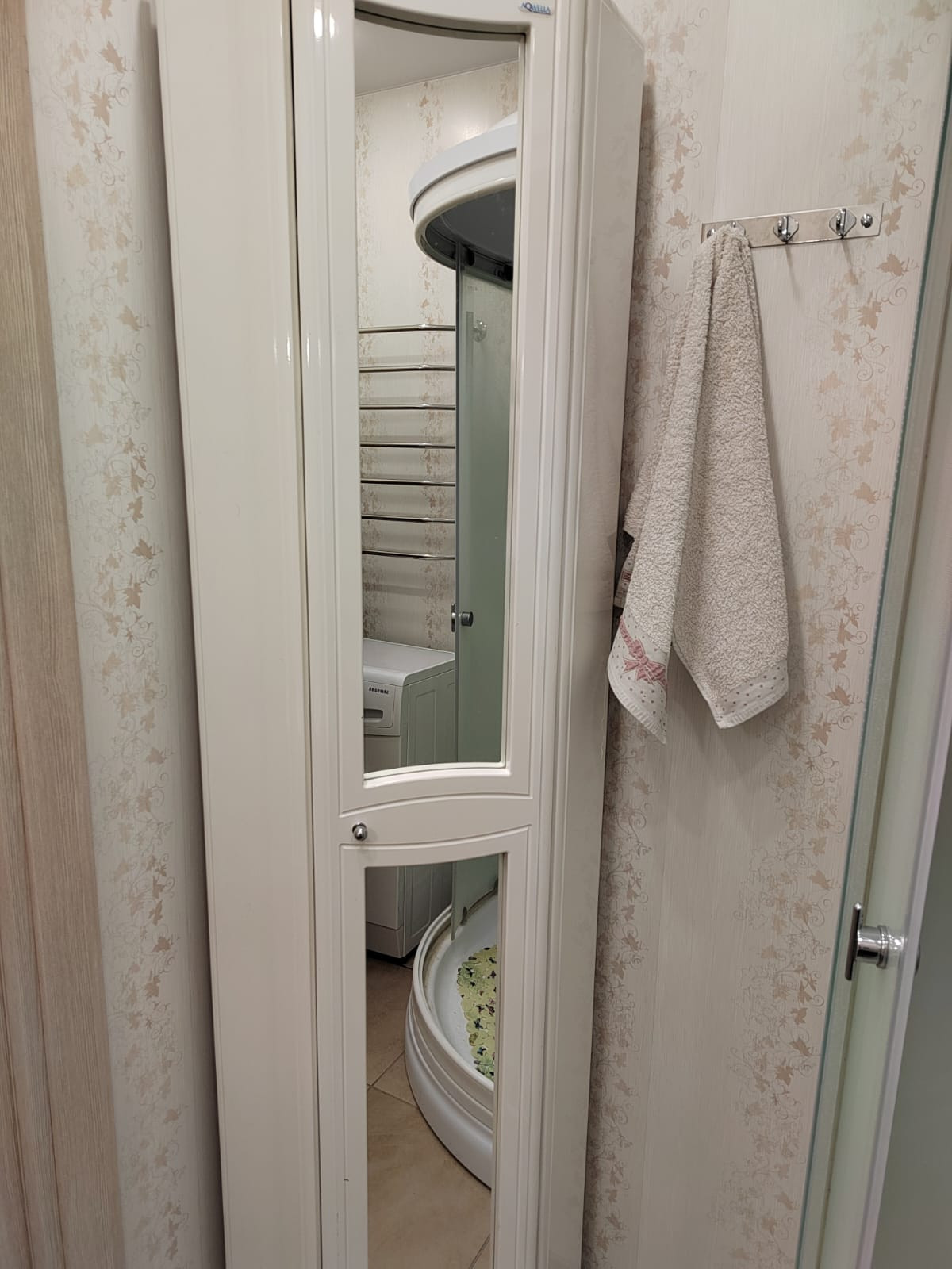 Санузел раздельный, трубы все новые. В санузле натяжные потолки с точечной подсветкой. В ванной комнате душевая кабина, так же удобно можно разместить стиральную машину и шкафчик для бытовой химии. В прихожей около санузла имеется встроенный шкаф.