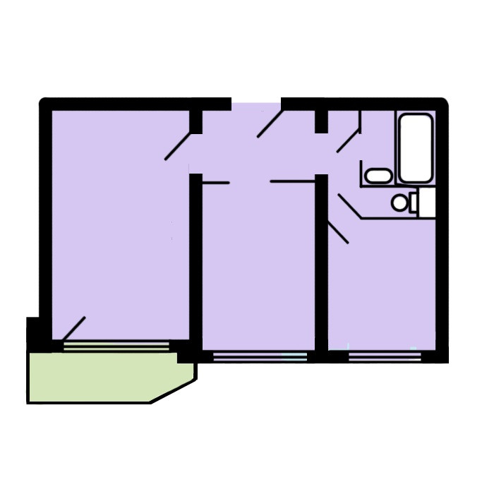 Общая площадь квартиры без учета лоджии 51.2 кв.м., комнаты изолированные 19 и 14 кв.м. из большей комнаты выход на застекленную лоджию, кухня 8,5 кв.