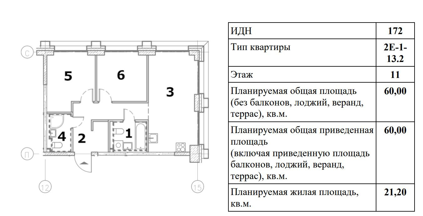 Общая площадь 60 м2