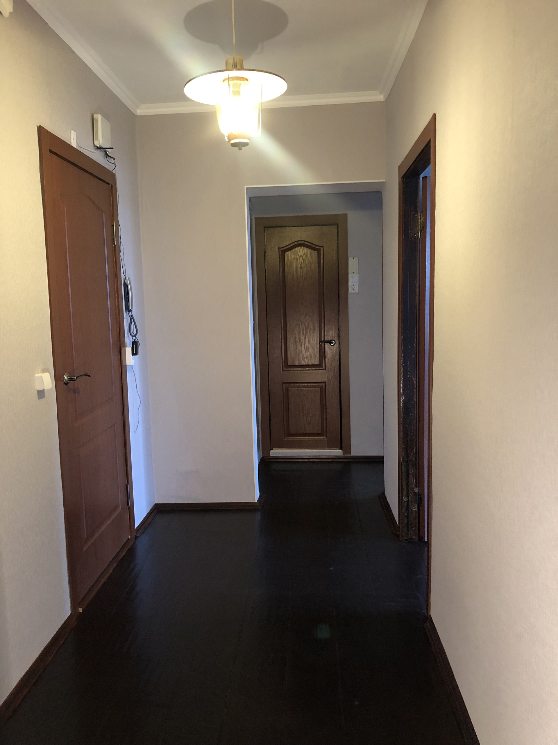 В квартире сделан косметический ремонт. Без перепланировок. Балкон застеклен и отделан. Окна заменены на пластиковые стеклопакеты фирмы Рехау.