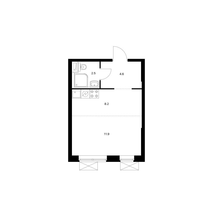 Общая площадь 27.2 м2