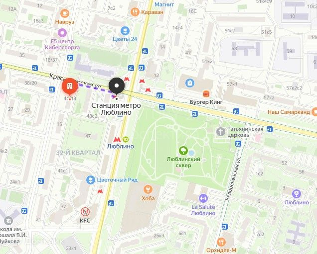 Удобная транспортная доступность, до метро Люблино 2 минуты пешком, 15 минут на машине до МКАД и 20 минут до ТТК.