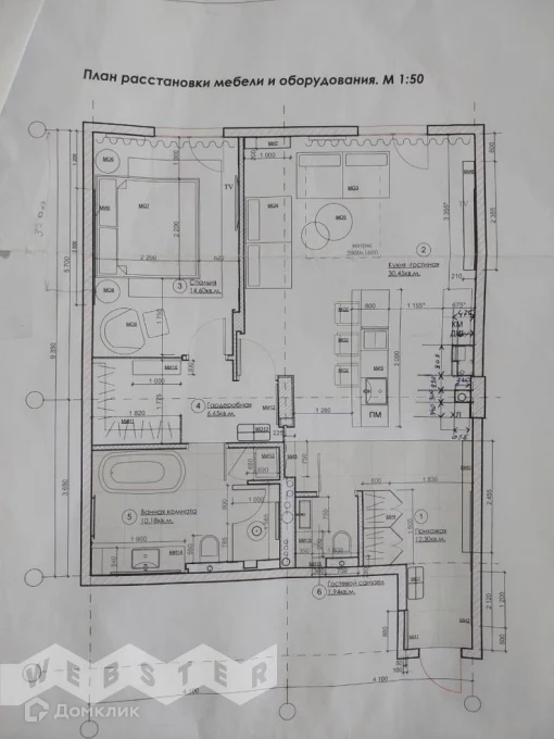 Жилая площадь 43.7 м2