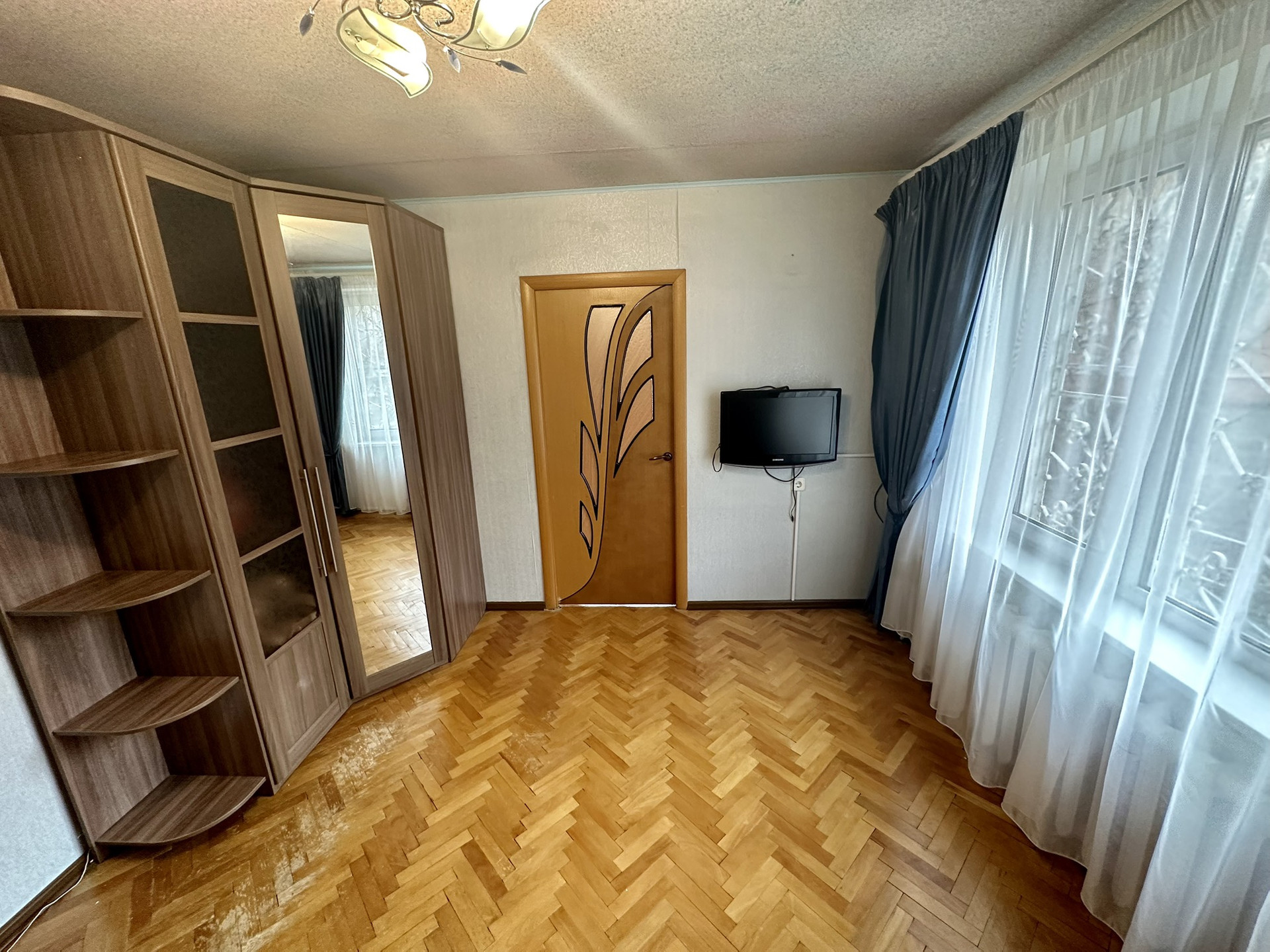 В пешей доступности 4 д/с, 3 школы, кадетская школа, рынок, магазины, поликлиники, больница им. Еромишанцева, спортивный комплекс. Район тихий, уютный, зеленый. В квартире требуется косметический ремонт. Комнаты смежные (9 и 13 кв.м), кухня 8 кв.м, с/у совмещенный. Окна выходят на юго-запад и запад (солнечно во второй половине дня). В квартире очень тепло зимой, не жарко летом. Дом после ремонта (холлы, фасад, крыша). Мебель и техника обсуждается.