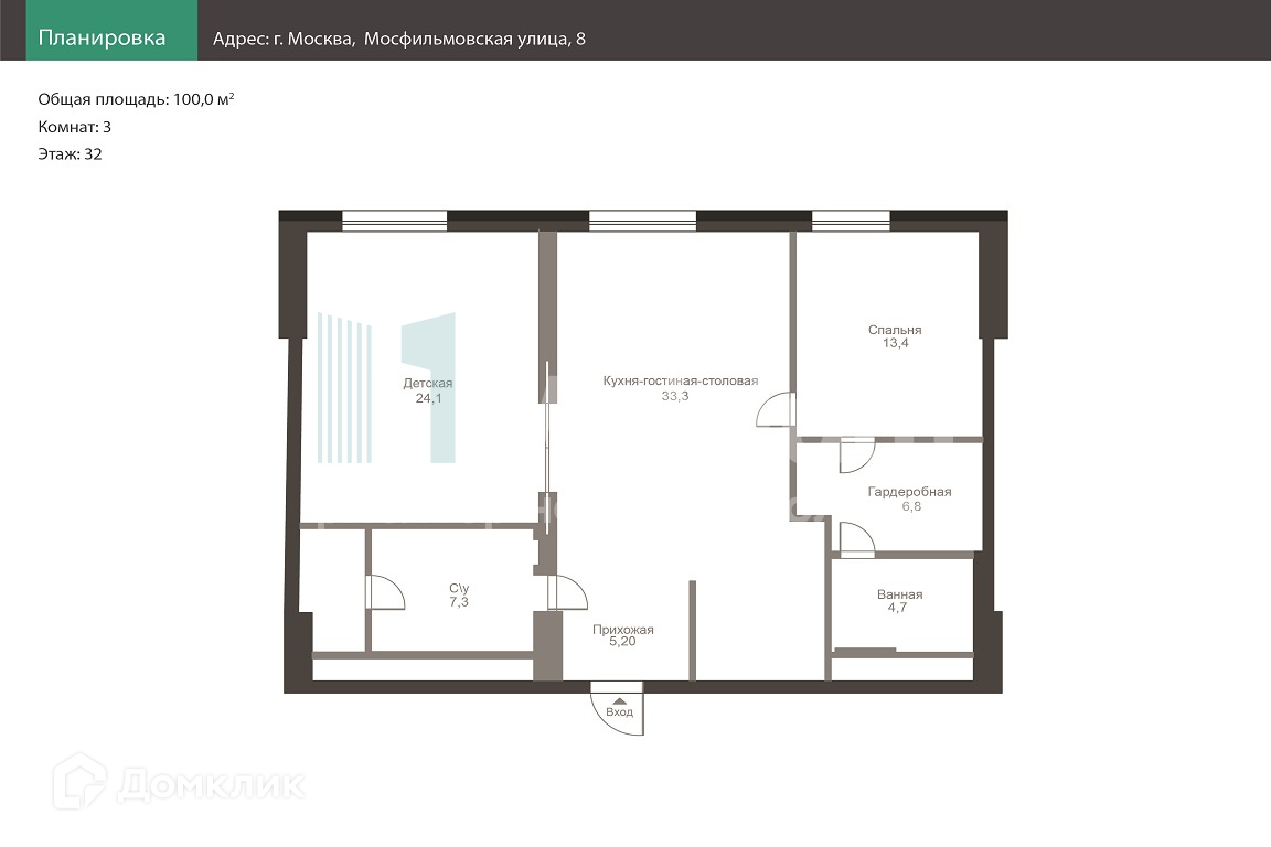 3-комнатная квартира, 100 м2, этаж 32 / 32, на продажу в Москве, улица Пырьева, 2