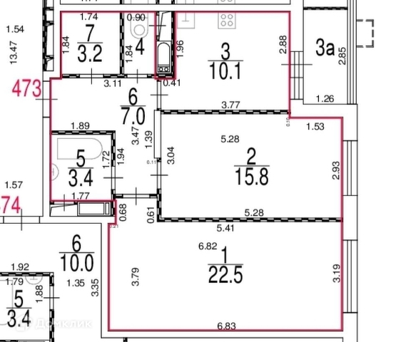 Общая площадь 63.7 м2