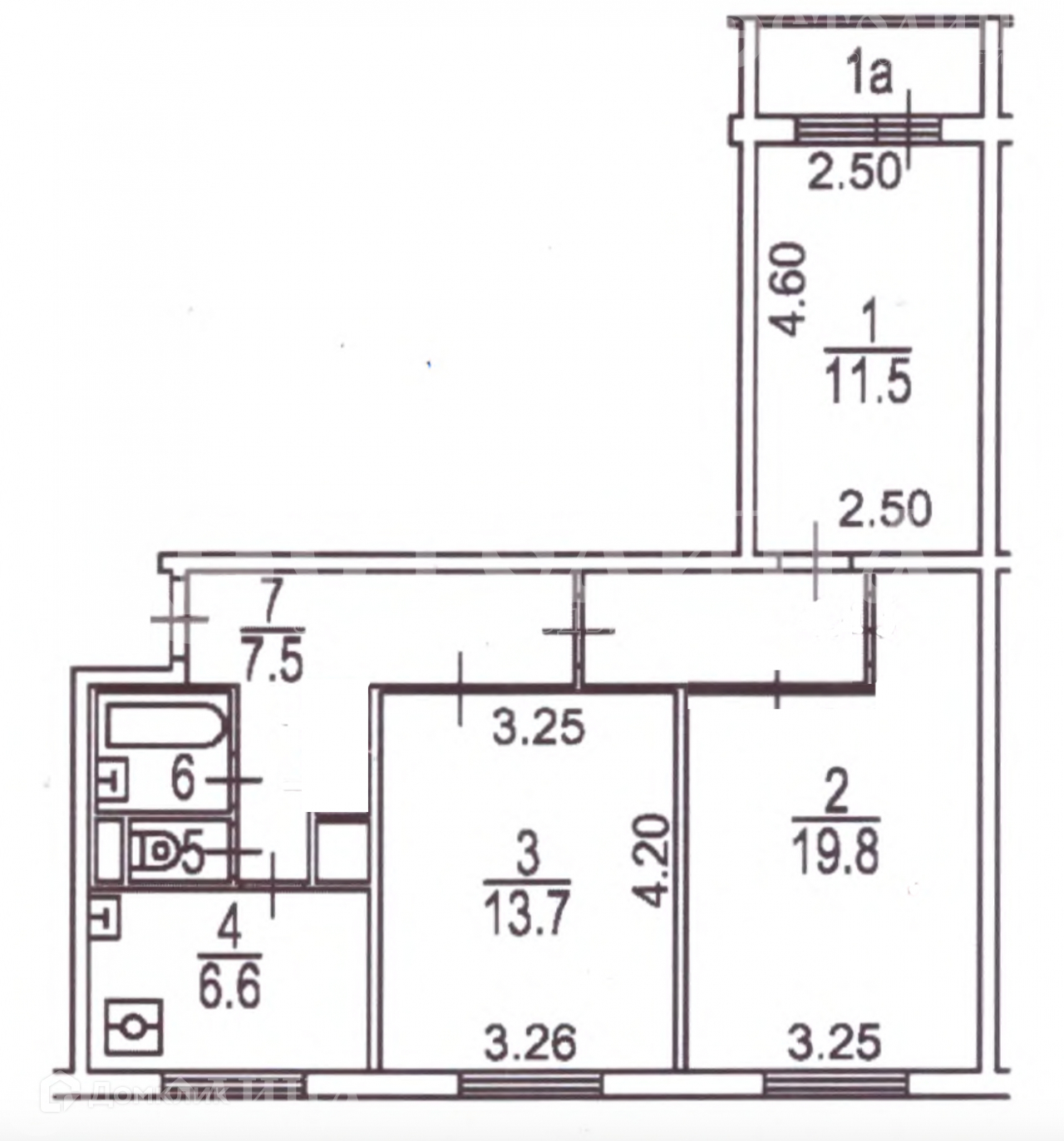 Три изолированные комнаты 19.8кв.м., 13.7кв.м. и 11.5кв.м. с выходом на застекленную лоджию 1,4кв.м. Кухня 6,6кв.м. Санузел раздельный в плитке. Высота потолков 2,64м. Планировка квартиры с точными размерами комнат представлена в фото.