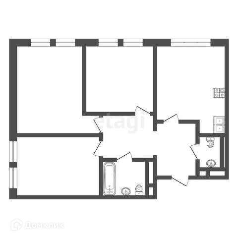 3-комнатная квартира ("евро четырехкомнатная") площадью 65 кв.м.