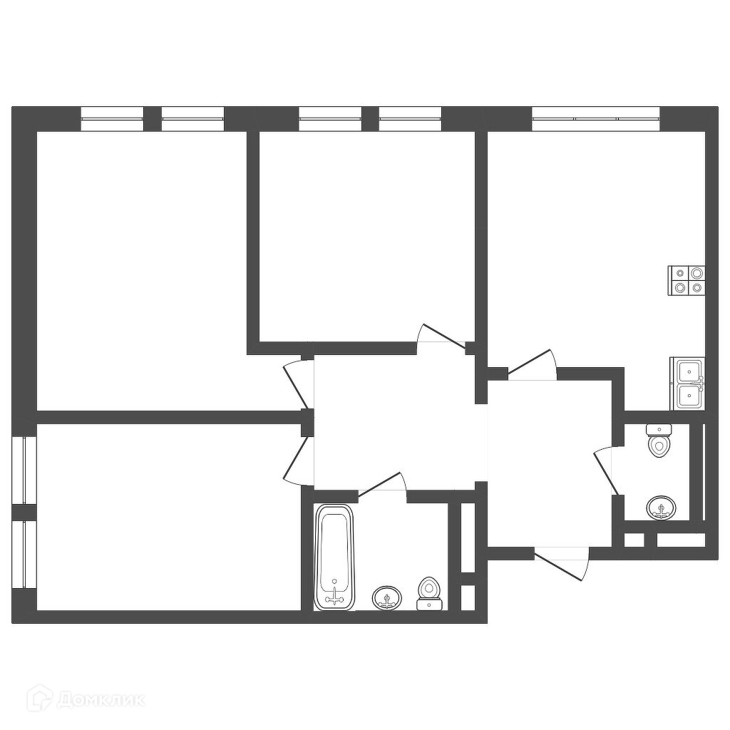 Планировкой квартиры предусмотрели просторную кухня-гостиную , и три отдельные жилые комнаты. Имеется два санузла.
