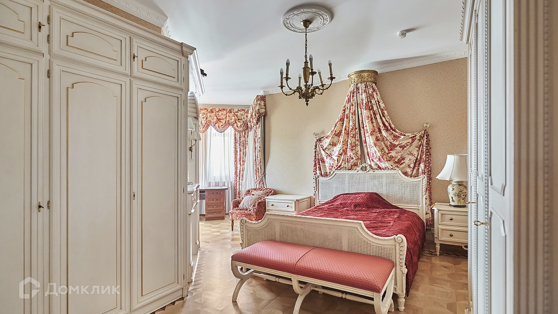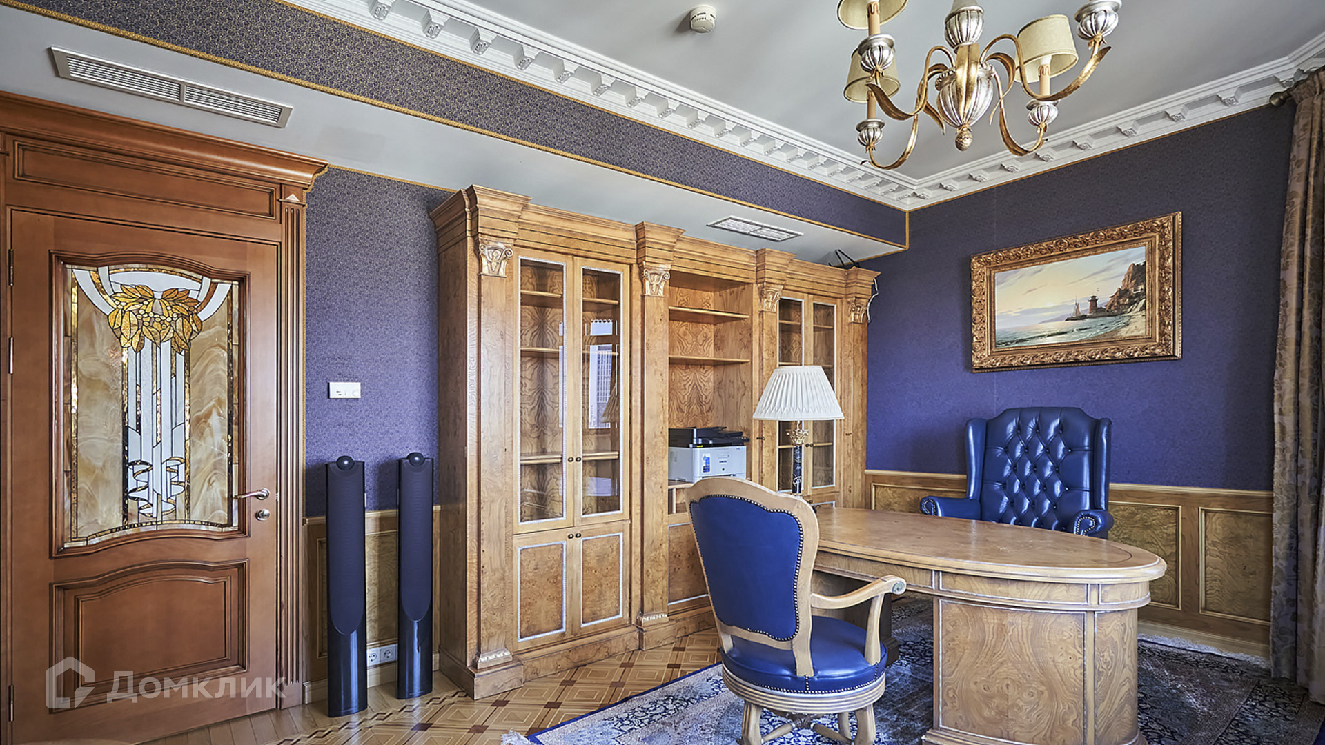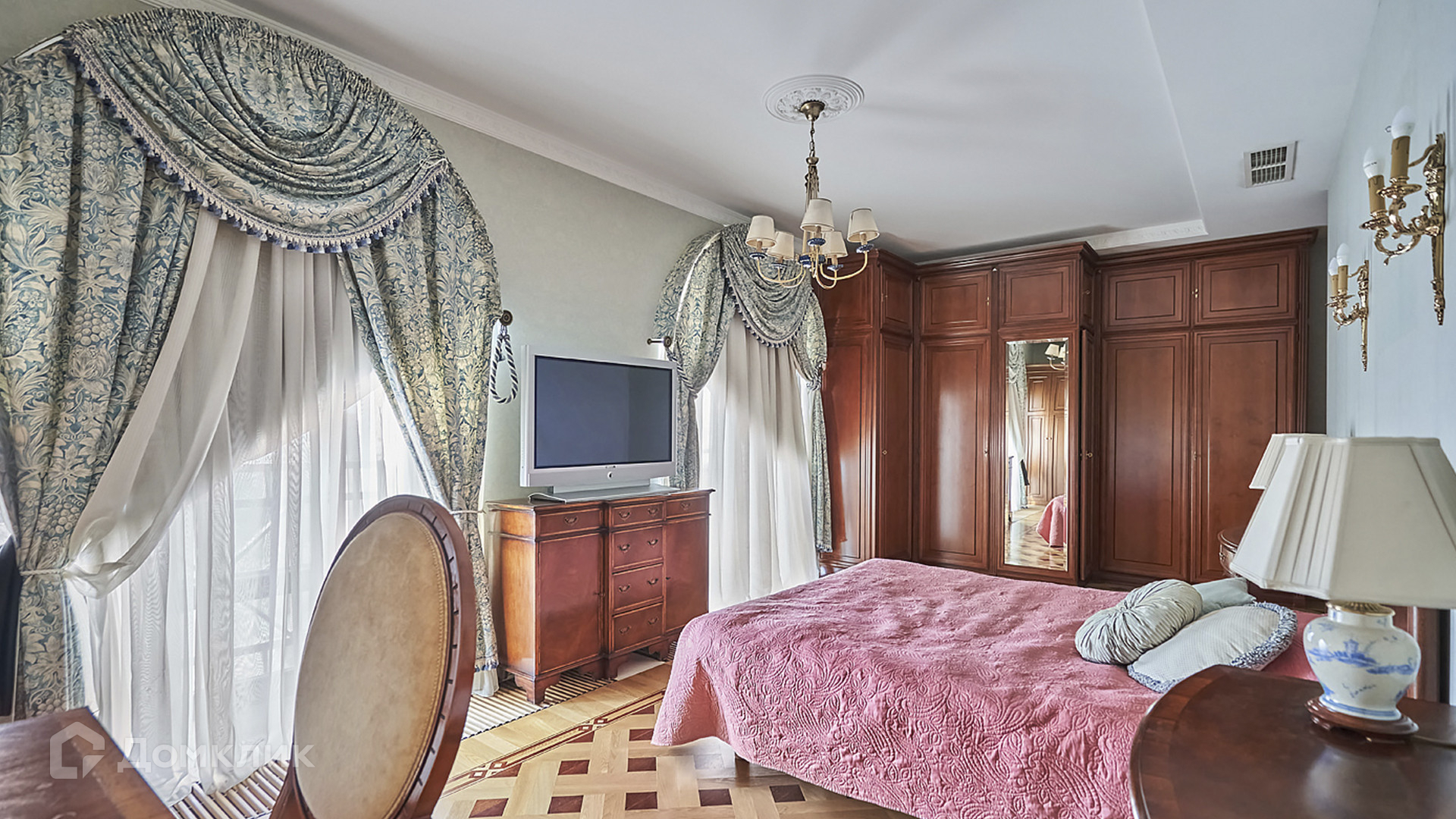 ID 209 416. Квартира с 4-мя спальнями общей площадью 291 м² в клубном комплексе бизнес-класса «Триумфальный дом» в тихих дворах Кутузовского проспекта, рядом с Бородинской панорамой и Парком Победы. Выполнена светлая дизайнерская отделка с использованием ценных пород дерева, на полу уложен паркет, мебель изготовлена на заказ и привезена из Италии, предметы интерьера приобретены в антикварных салонах, итальянские люстры, шторы пошиты на заказ.