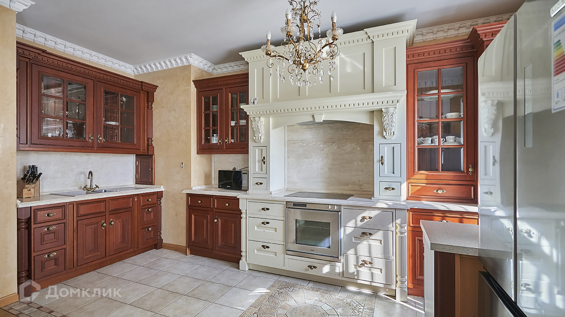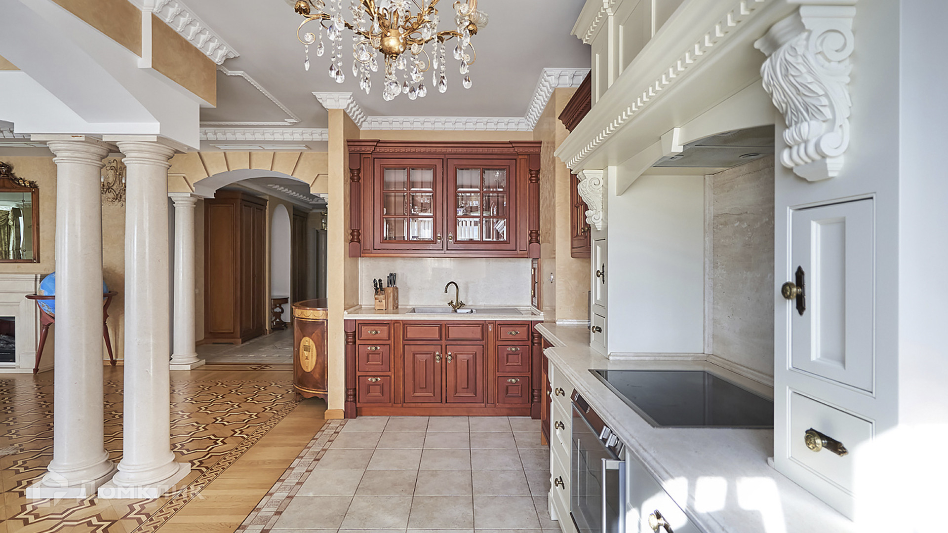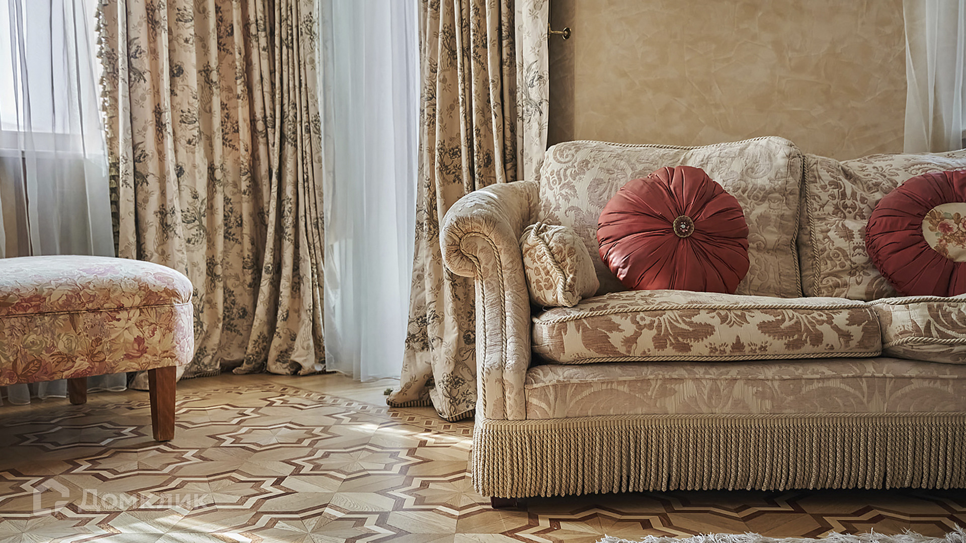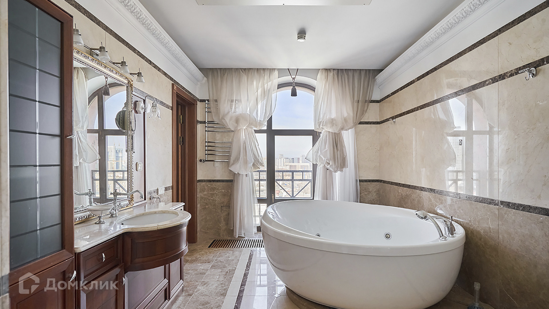 ID 209 416. Квартира с 4-мя спальнями общей площадью 291 м² в клубном комплексе бизнес-класса «Триумфальный дом» в тихих дворах Кутузовского проспекта, рядом с Бородинской панорамой и Парком Победы. Выполнена светлая дизайнерская отделка с использованием ценных пород дерева, на полу уложен паркет, мебель изготовлена на заказ и привезена из Италии, предметы интерьера приобретены в антикварных салонах, итальянские люстры, шторы пошиты на заказ.