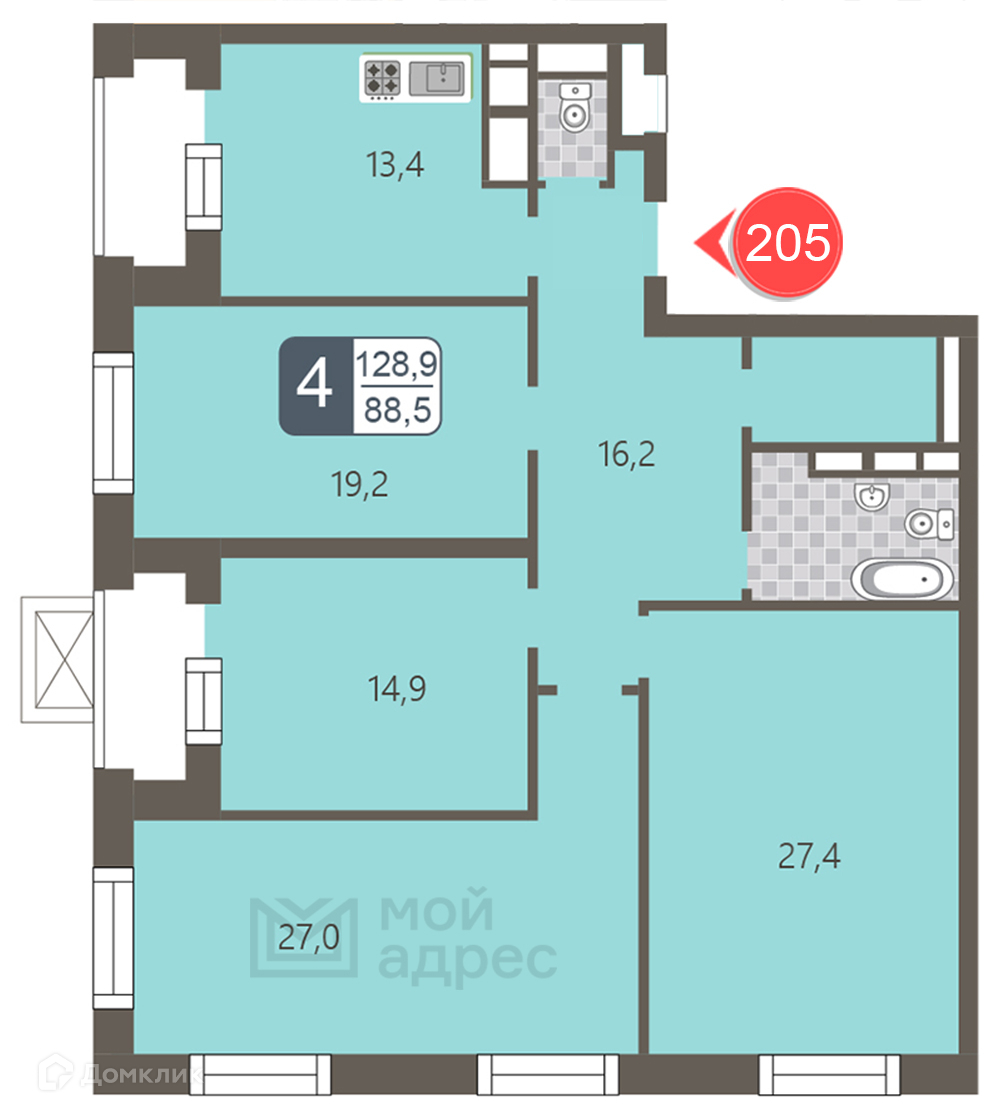 Общая площадь 128.9 м2