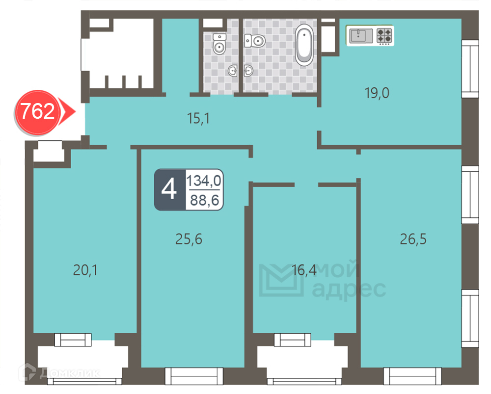 Общая площадь 134 м2