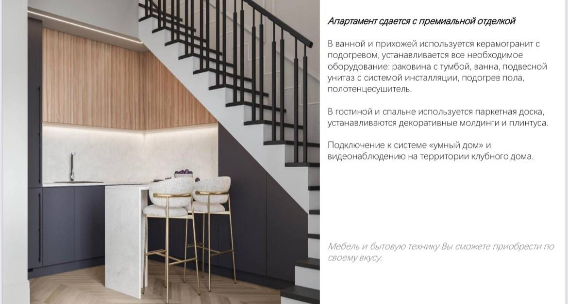 В лоте будет выполнена финишная премиальная отделка: