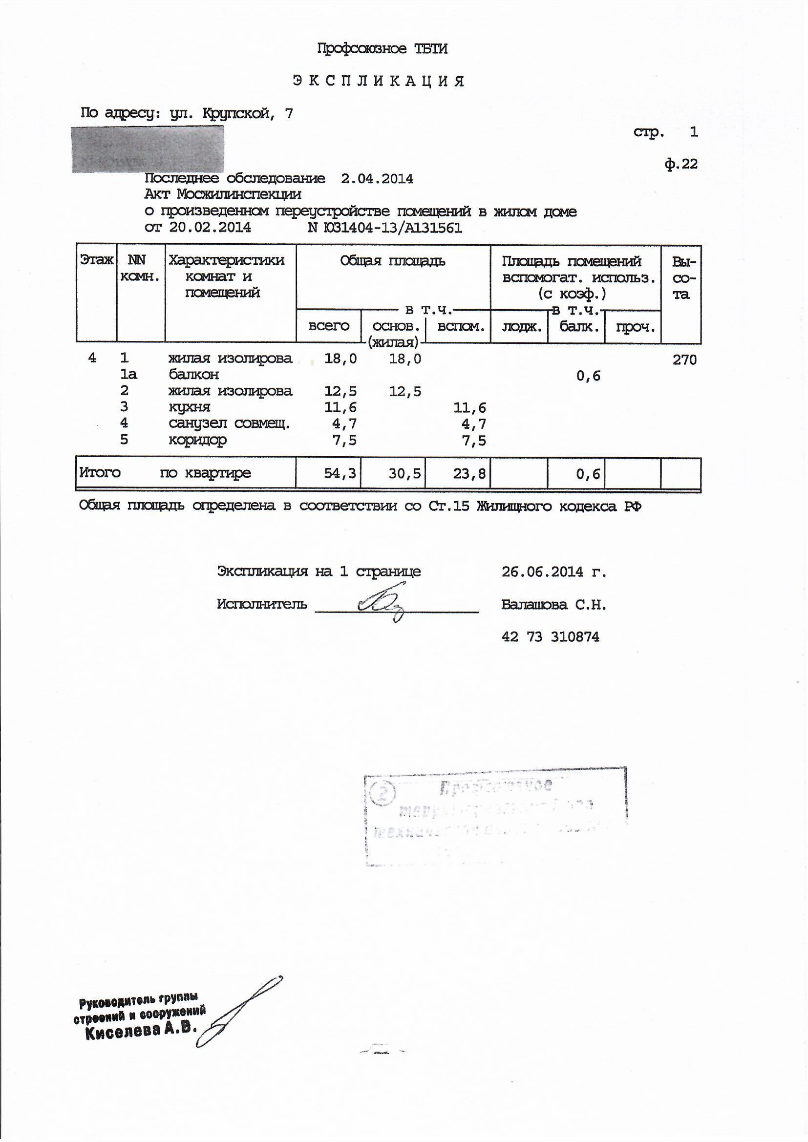 Общая площадь 54.3 м2
