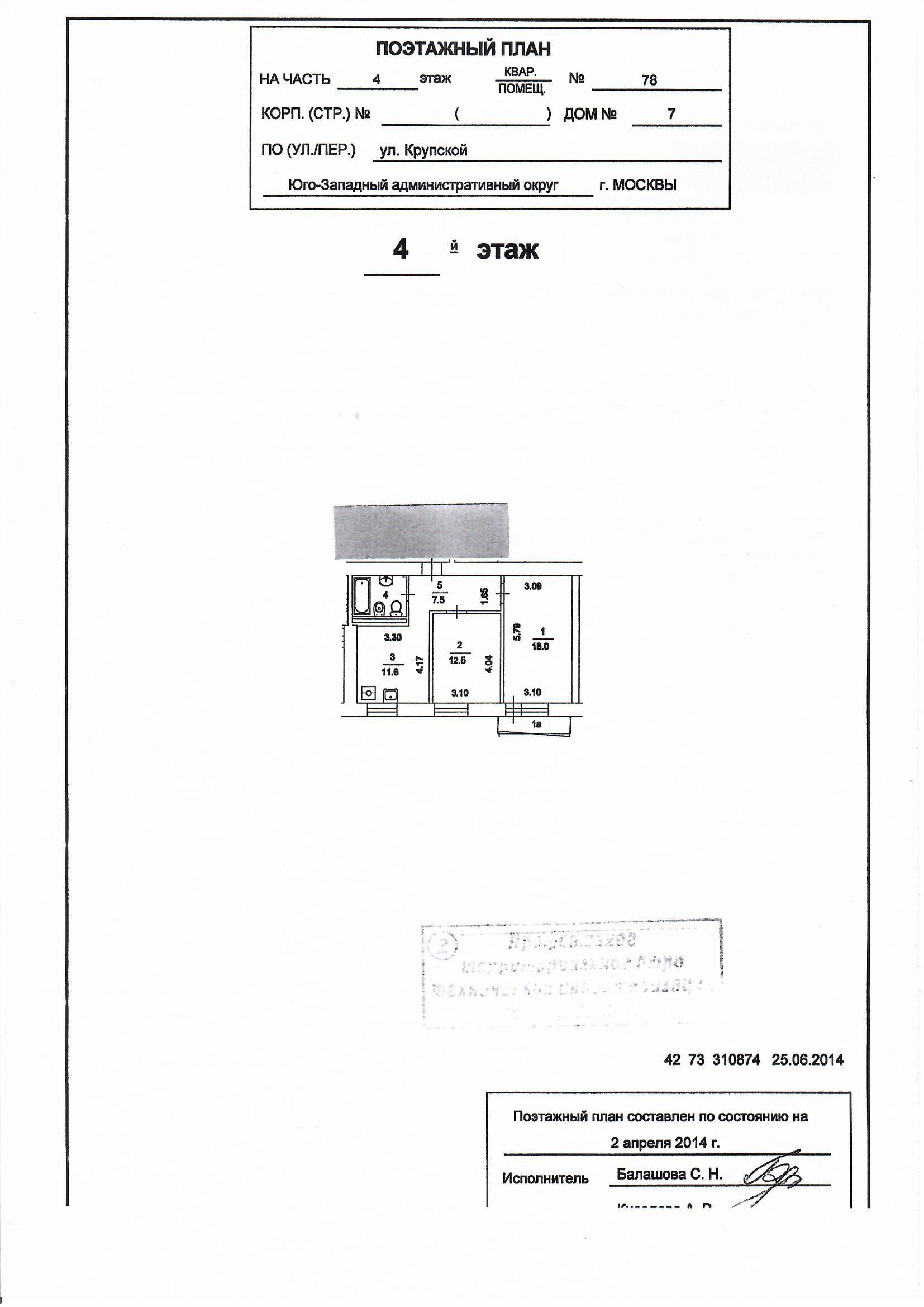 2-комнатная квартира, 54.3 м2, этаж 4 / 9, на продажу в Москве, улица Крупской, 7