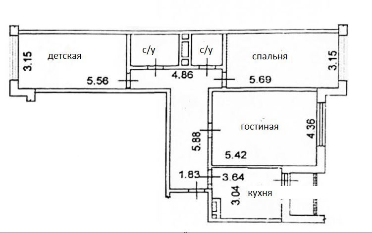 Жилая площадь 59 м2