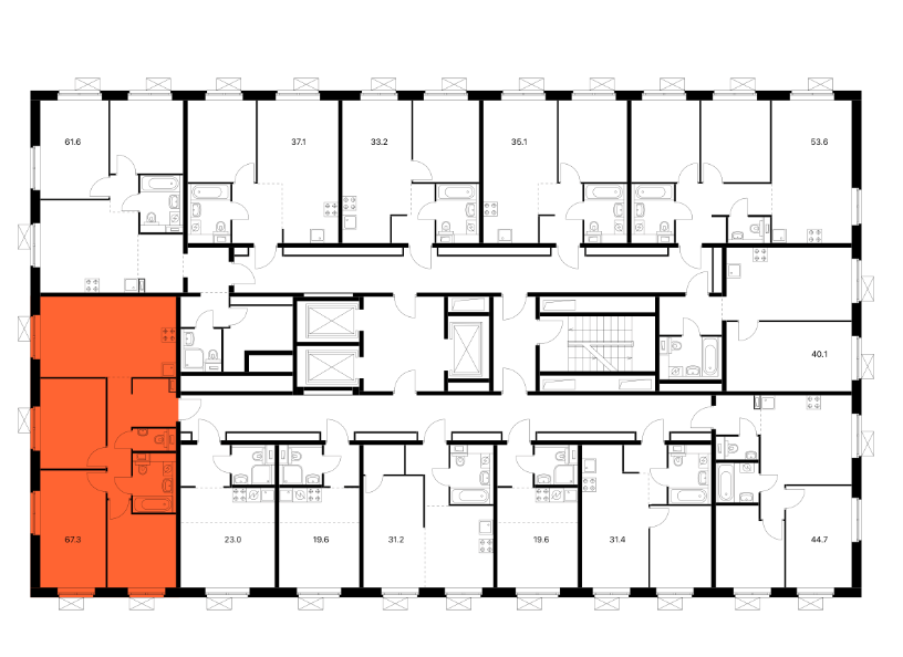 Общая площадь 67.3 м2