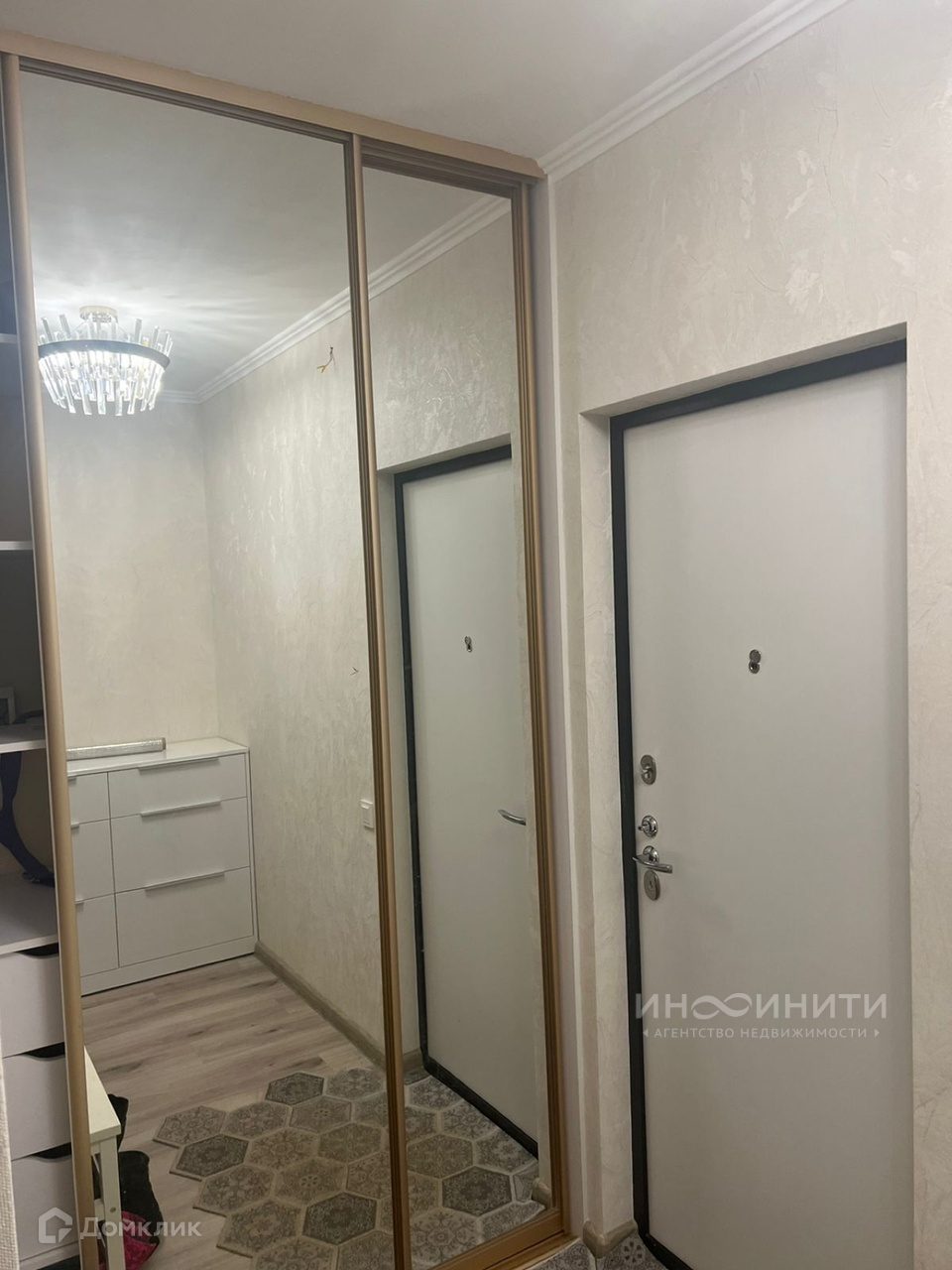 В прихожей установлен большой  зеркальный вместительный шкаф-купе