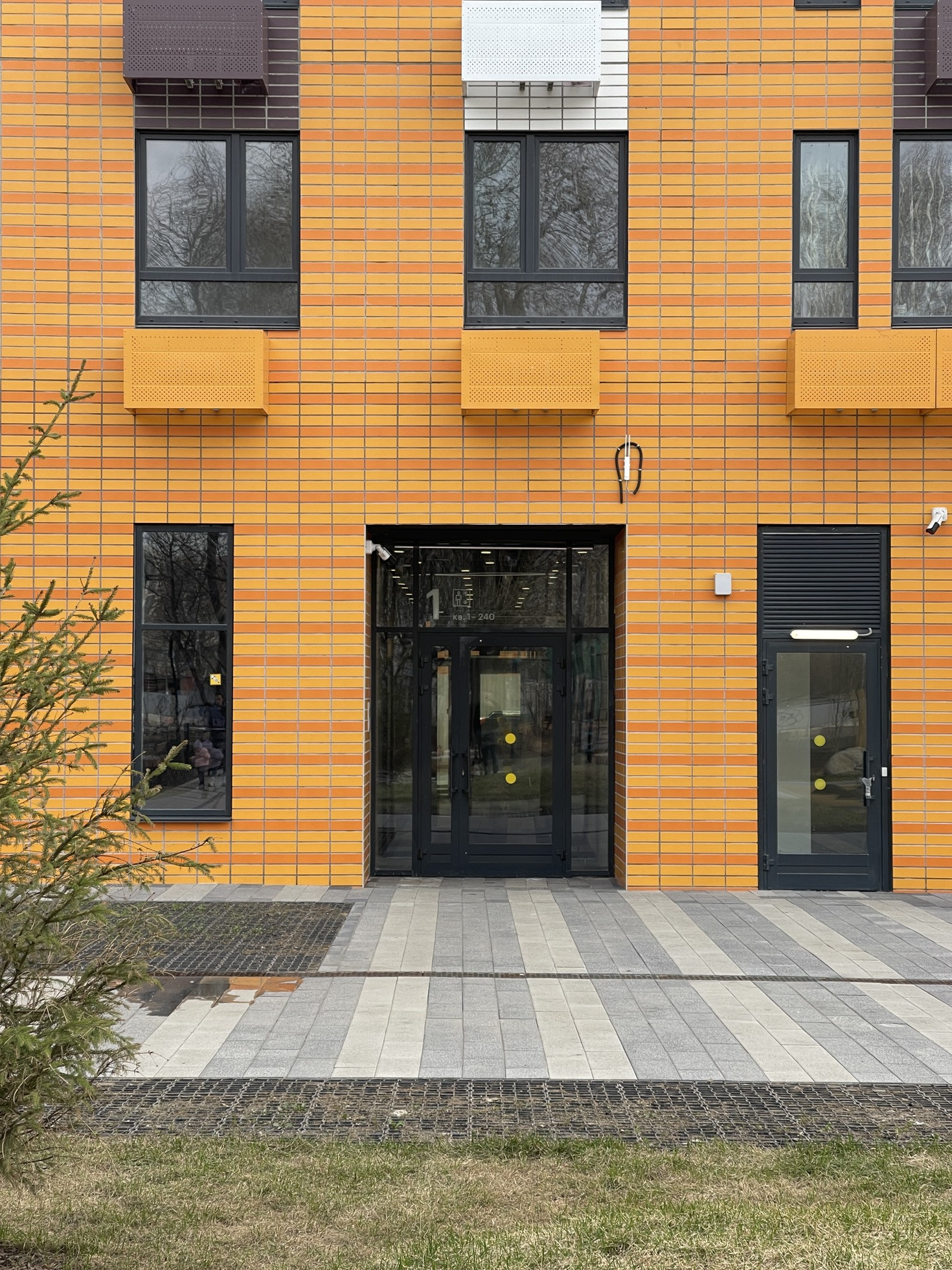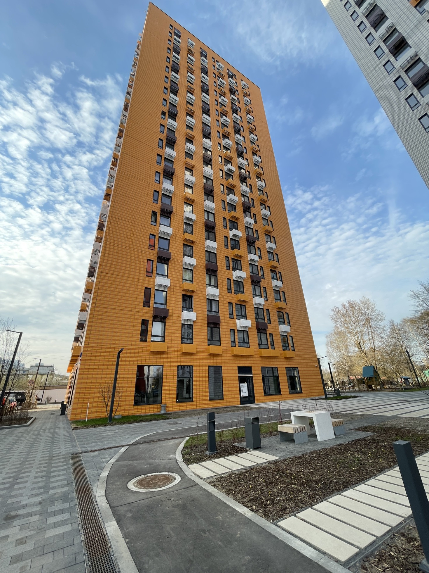 Двор с детскими и спортивными площадками.