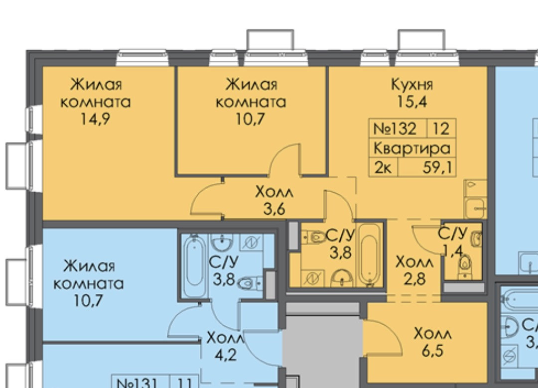 Общая площадь 59.1 м2
