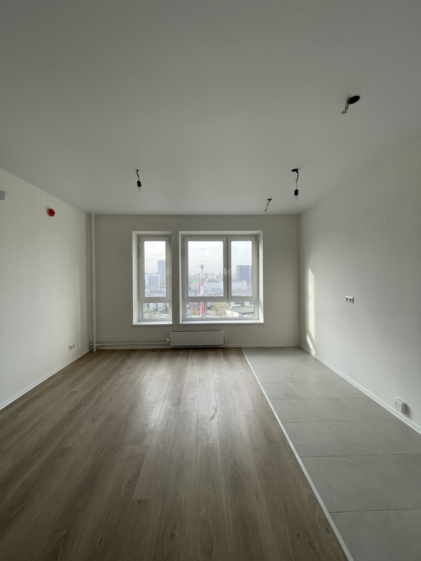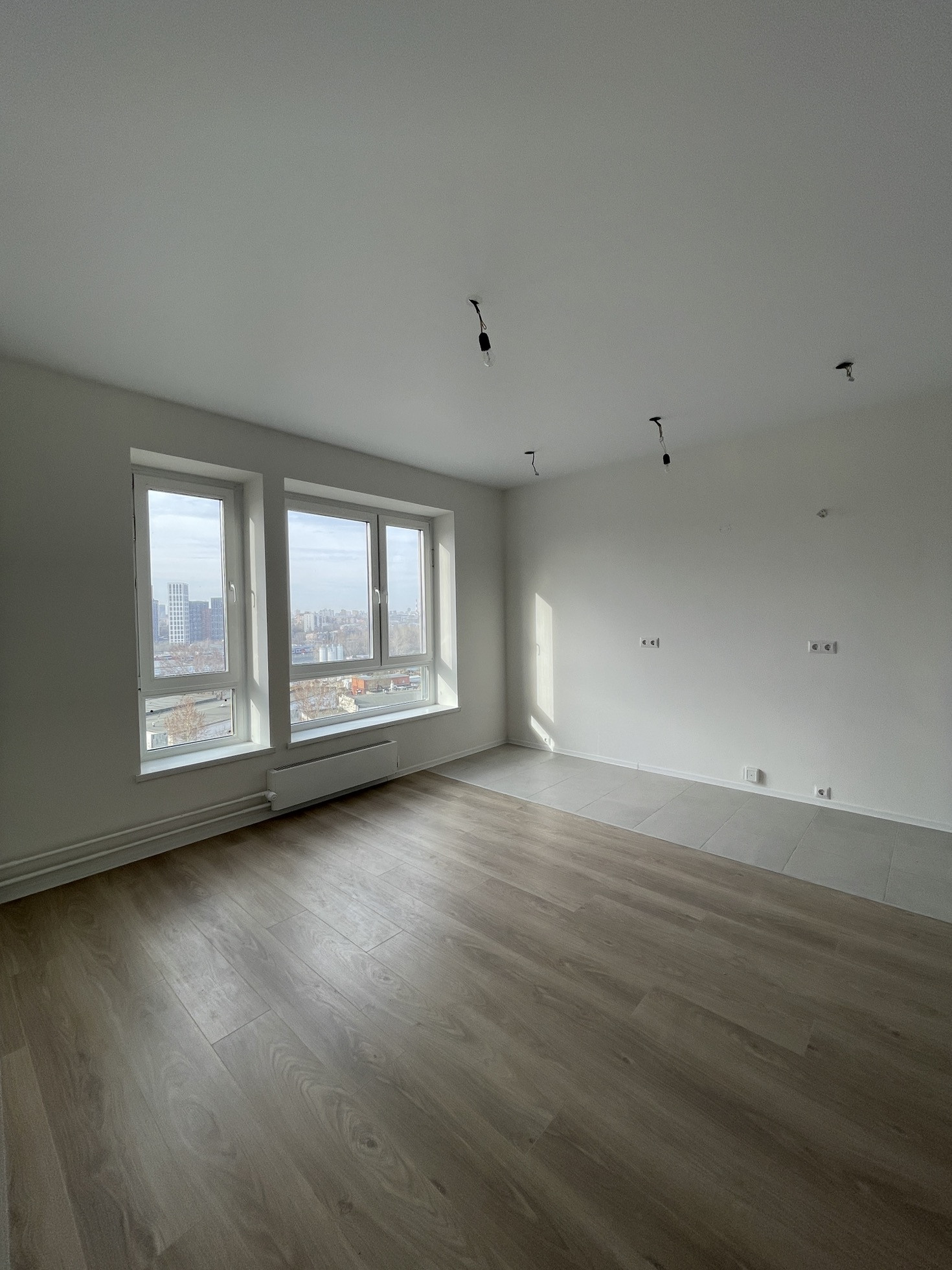 Плитка на полу и ламинат.
