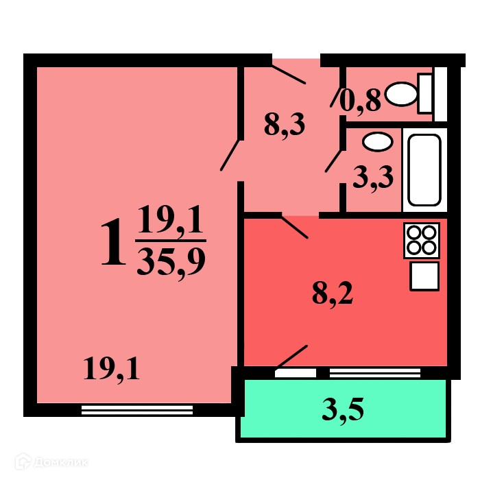 Балкон, лоджия 1 лоджия