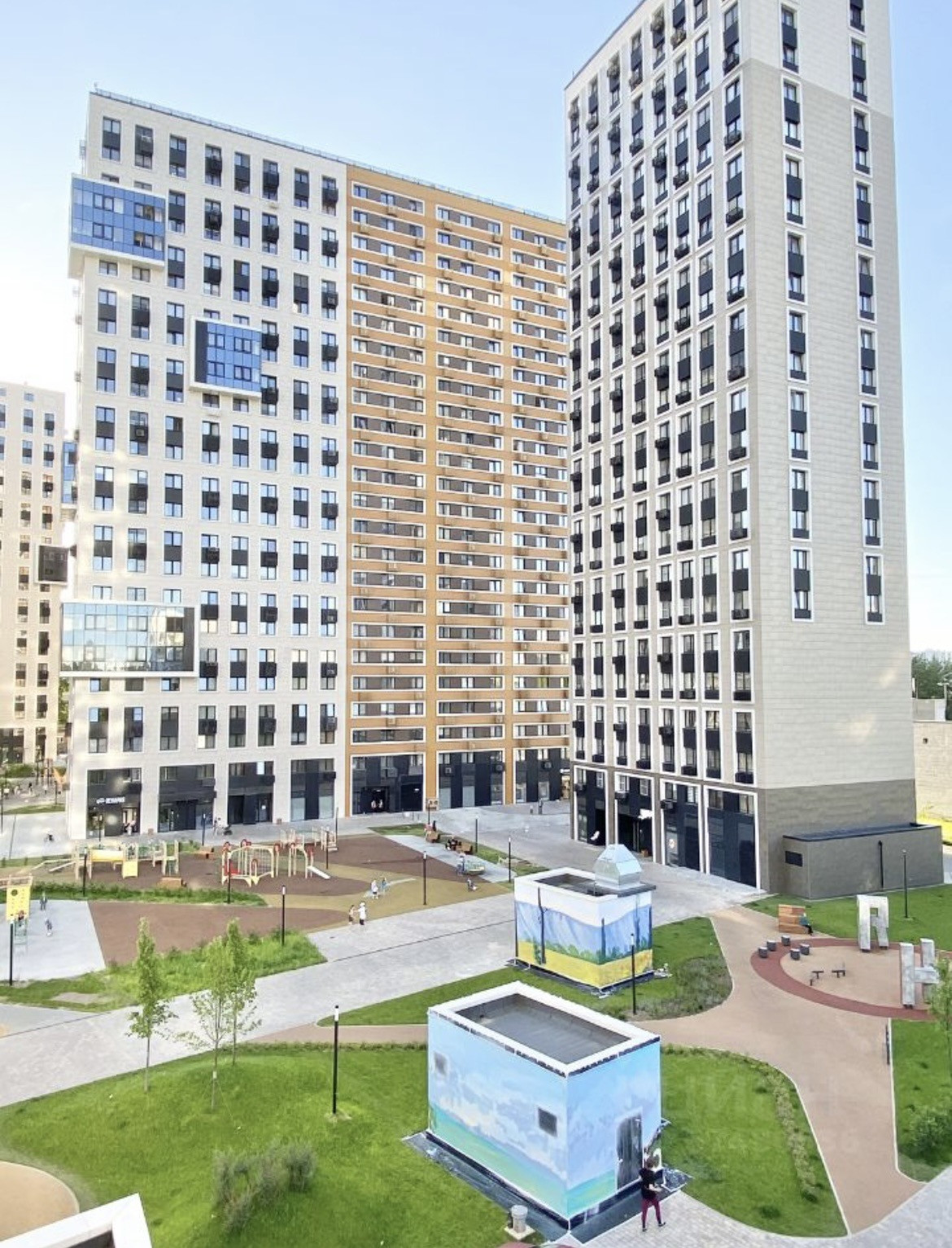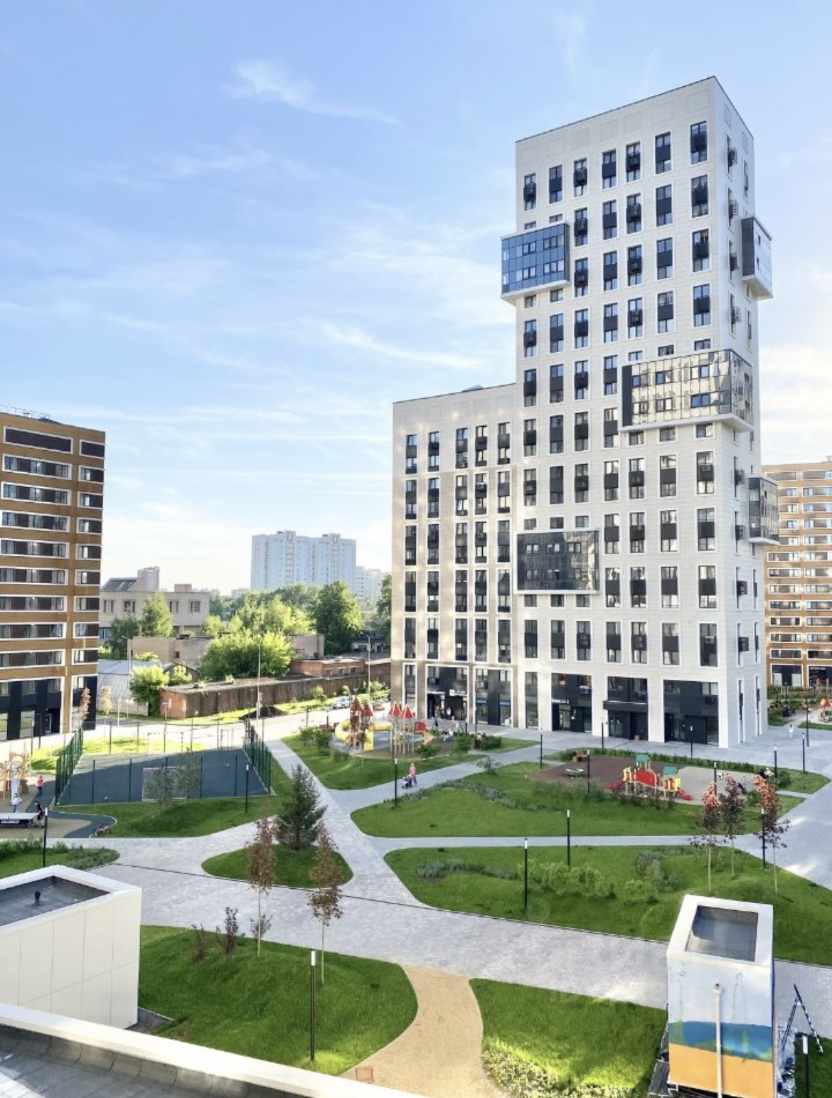 В ЖК: супермаркеты, пекарня, стоматология, аптеки и медцентр, несколько салонов красоты, Озон/Вайлдберис/Яндекс, пиццерия, кафе, детский клуб, балет и йога-студия.