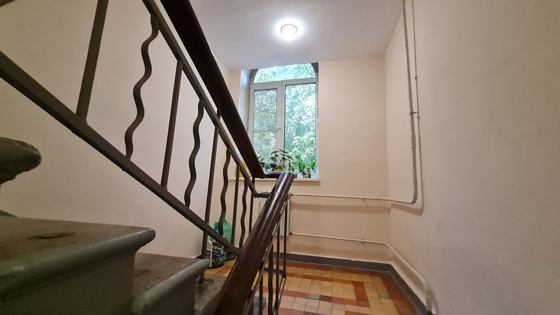 Общая площадь 55 кв.м, комнаты изолированные 17 и 15 кв.м. Кухня 9 кв.м. Высокие потолки. Окна на две стороны света.