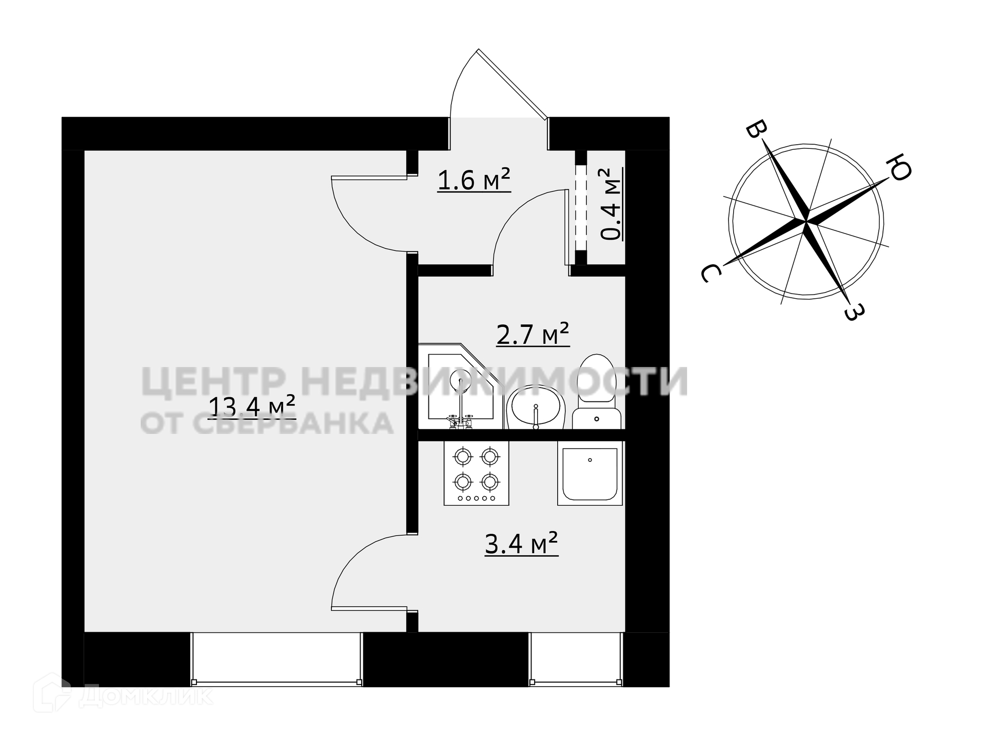 Жилая площадь 13.4 м2