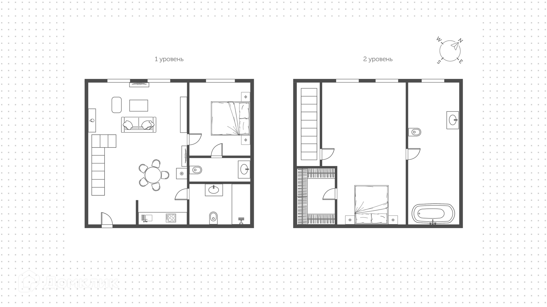 Санузел 1 совмещенный и 1 раздельный