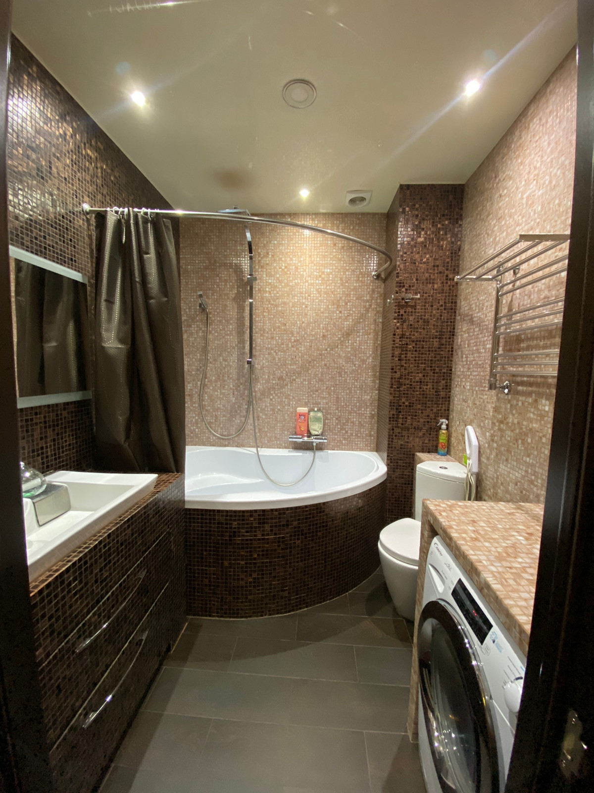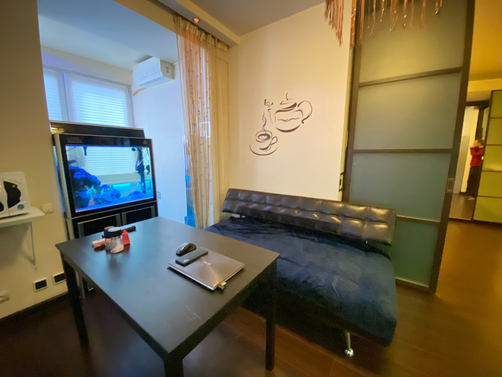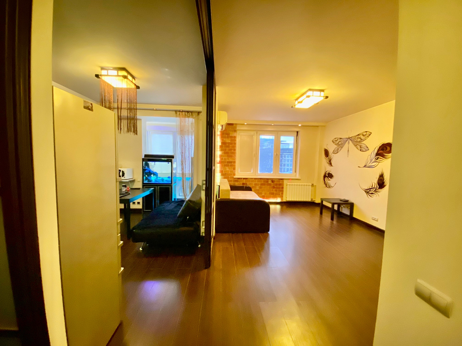 , полы с подогревом , так же в квартире встроенный аквариум.