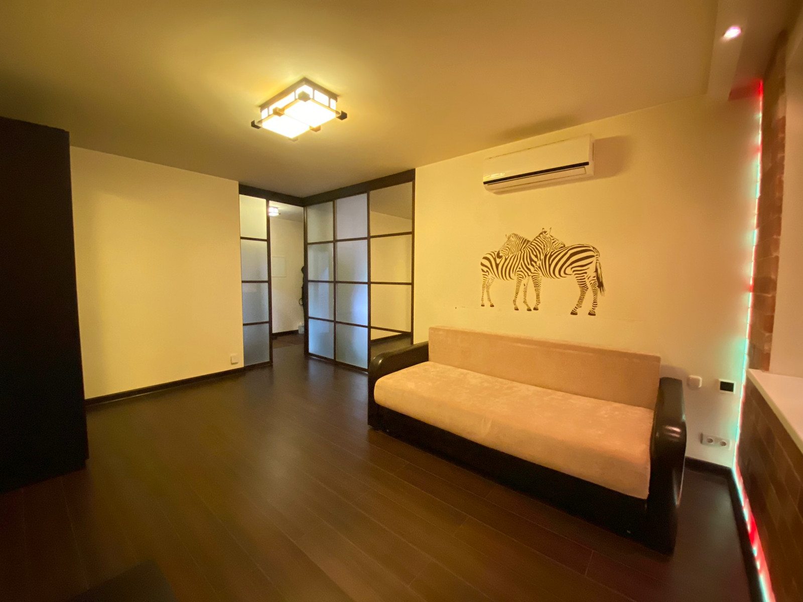 В районе с развитой инфраструктурой, в пешей доступности от метро предлагается уютная,  просторная однокомнатная квартира с дизайнерским ремонтом.  Современный ЖК "Квартал  на Ленинском" дом построен по индивидуальному проекту. Сделано удачное зонирование комнаты и кухни раздвижными дверями.