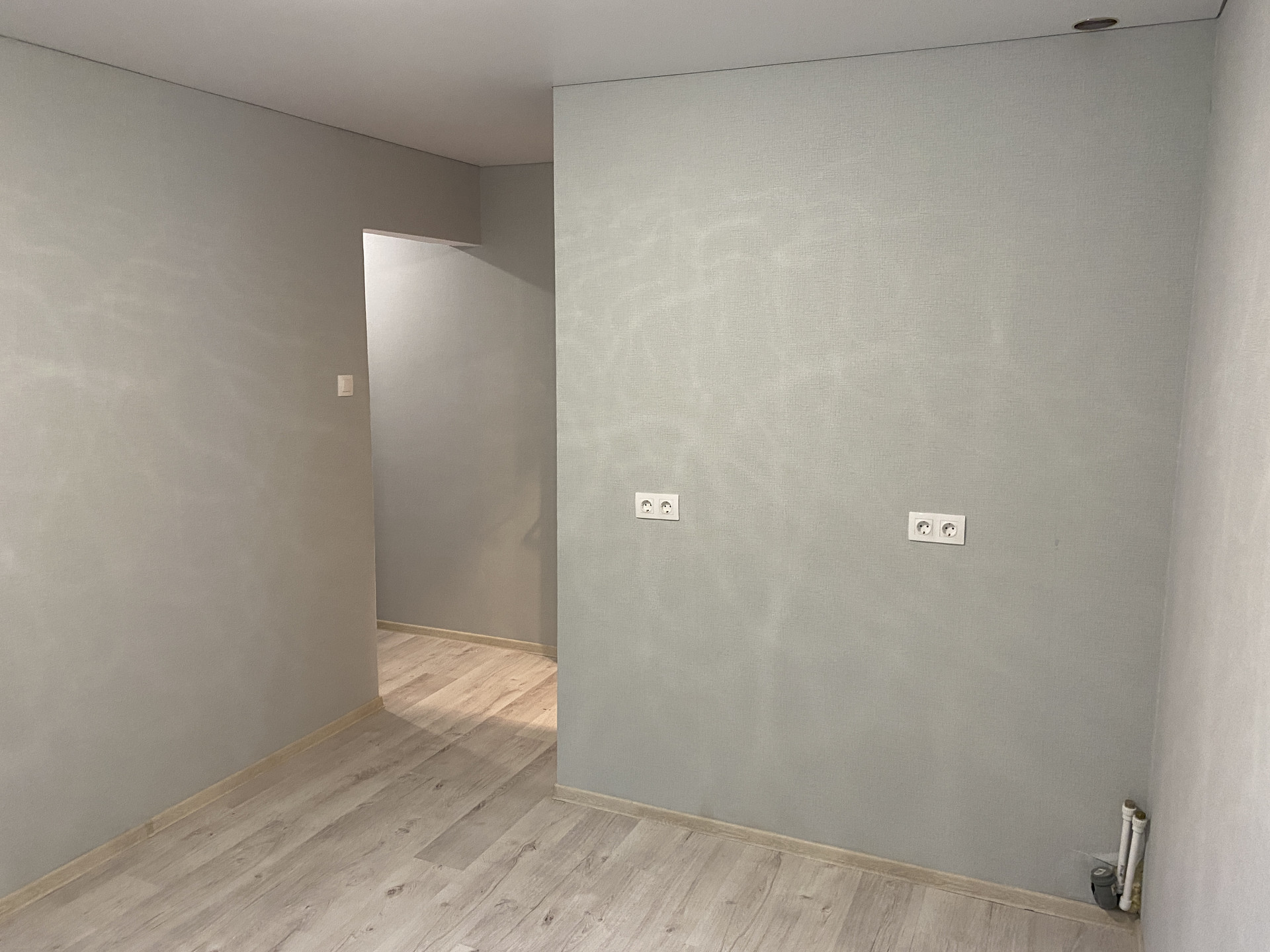 - стены: виниловые светлые обои,