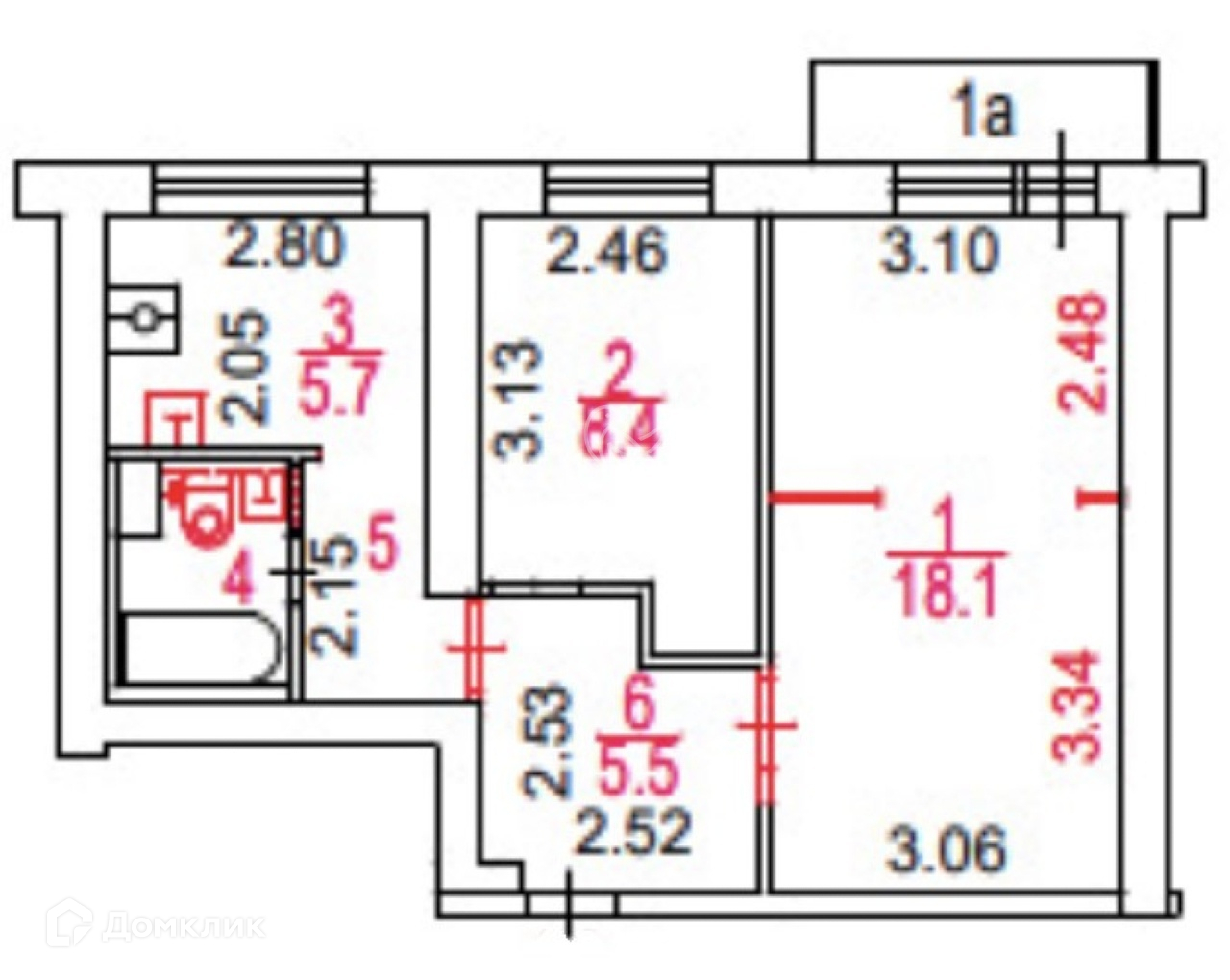 Общая площадь 44.8 м2