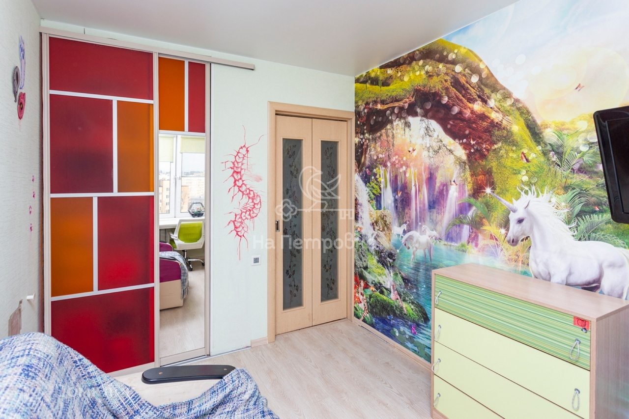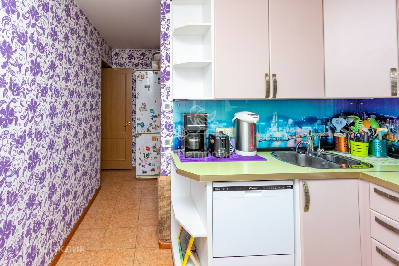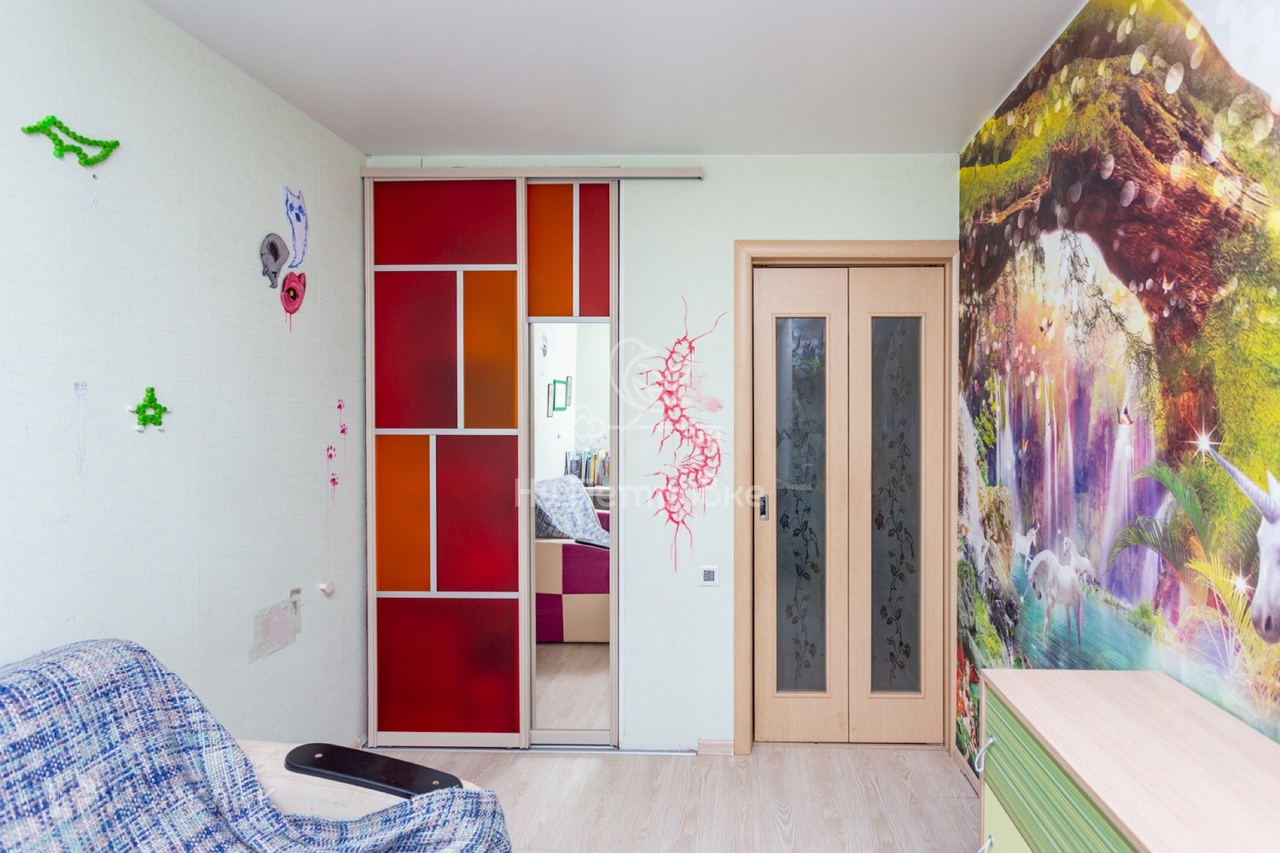 О квартире: Комнаты раздельные 18,1 и 8,4 метра. В большой комнате установлен кондиционер. В детской встроенный шкаф, письменная столешница вдоль стены у окна. На  кухне имеется встроенная посудомоечная машина.  Произведена разводка труб водоснабжения, установлен проточный водонагреватель, для комфорта в период сезонного отключения горячей воды. Новые радиаторы отопления с регуляторами температуры. Окна квартиры выходят на западную сторону, во двор, с видом на детскую и спортивную площадки, школу. Пол: ламинат, плитка. Потолки в квартире натяжные. Окна и балконный блок - стеклопакеты.