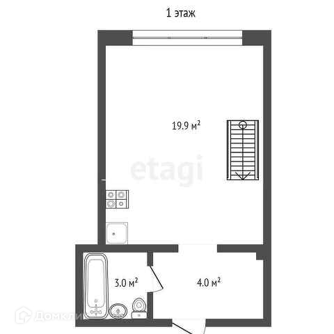 *Апартамент общей площадью 40м2 (1-й этаж - 26,90м2, второй этаж - 13,10м2)