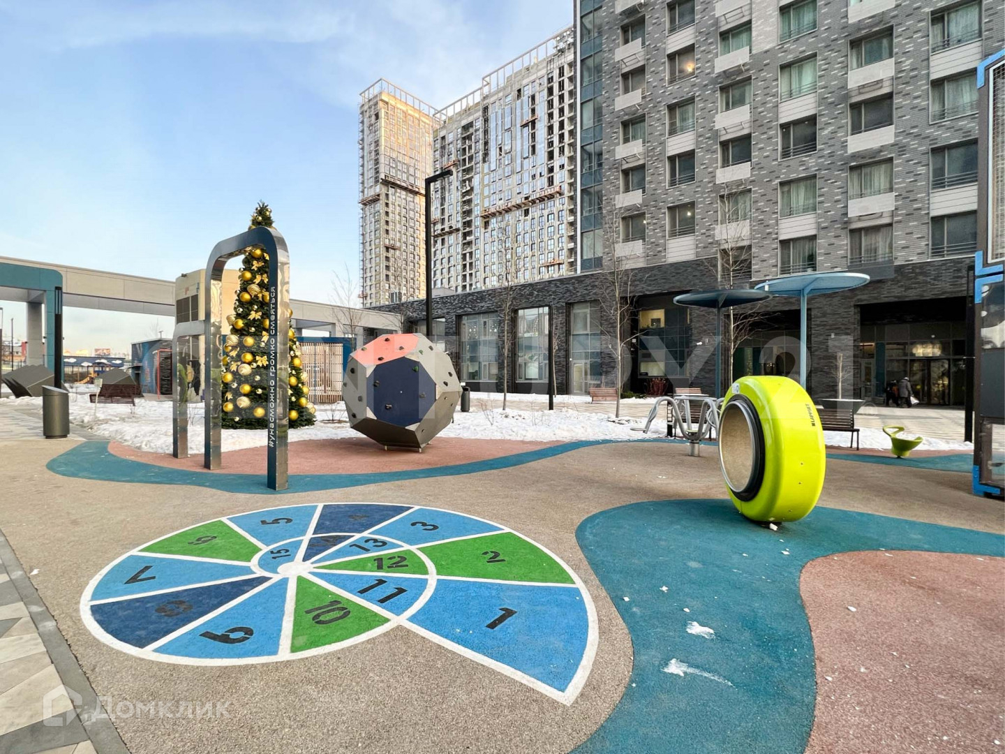 Вся территория комплекса оформлена в виде ландшафтного парка с разными зонами отдыха и представляет собой приватный двор, который разбит на отдельные зоны: детский городок , фонтан в окружении зеленых насаждений и скамеек, спортивная площадка.