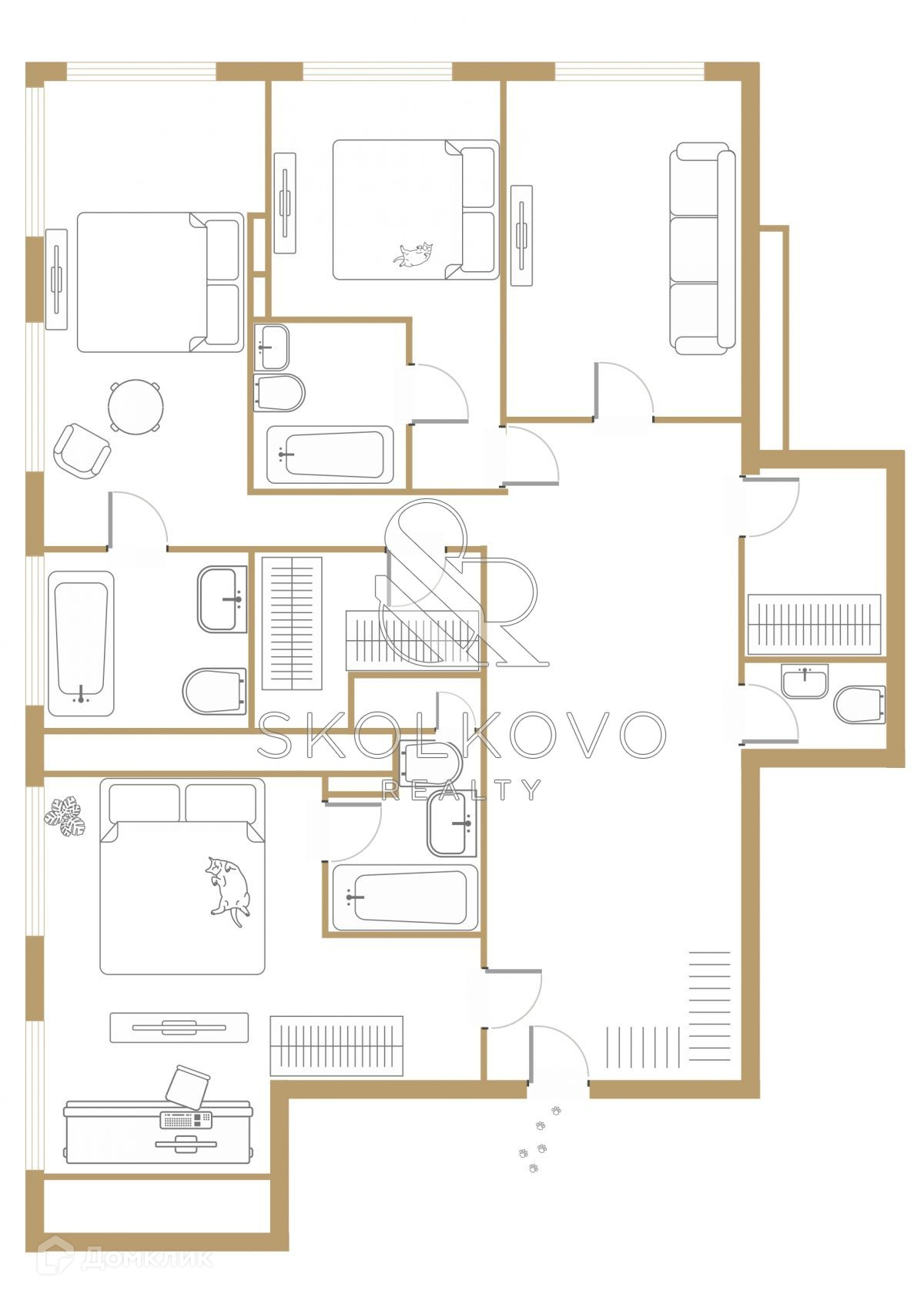 Изумительный вид на деловую дневную и энергичную ночную жизнь столицы сочетается с практически безграничными планировочными возможностями пентхаусов. Это двухуровневый объем, объединенный внутренней лестницей. Планировка свободная - по желанию владельца здесь можно расположить 4 спальни, 4 ванные комнаты, столовую, кабинет, гардеробные и даже бильярдную. Планировочные решения позволяют реализовать абсолютную или частичную автономию уровней  каждый этаж имеет отдельный вход. Пентхаусы такого размера можно использовать как место для комфортной жизни большой семьи или как представительский офис с возможностью проживания.