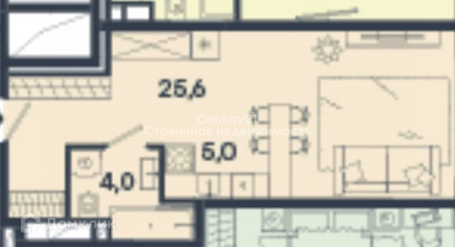 Общая площадь 34.6 м2