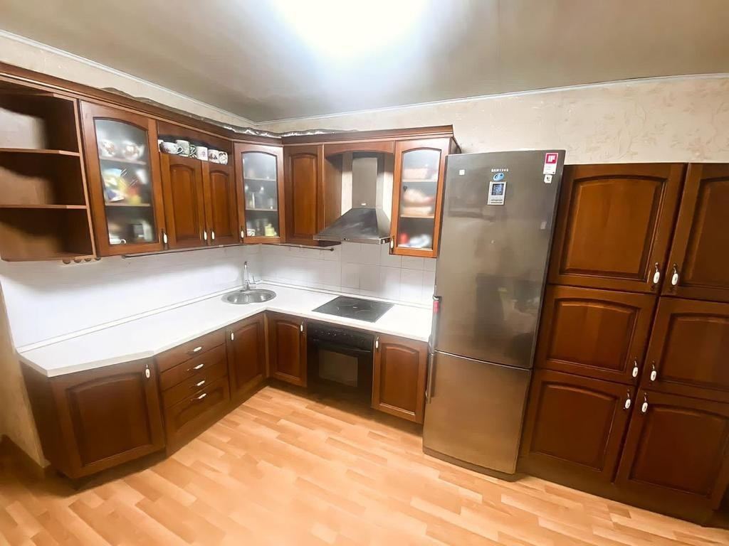 Квартира в одной семье с постройки дома. Обременений нет.  Квартира в хорошем состоянии, в комнатах свежий косметический ремонт, обои, натяжные потолки. Санузлы в плитке. Кухонный гарнитур оборудован встроенной техникой. Есть просторная темная ком6ата/кладовка.