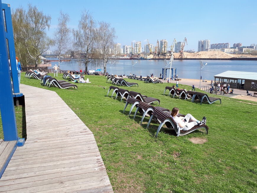 На Химкинском бульваре прекрасная прогулочная зона, качели,