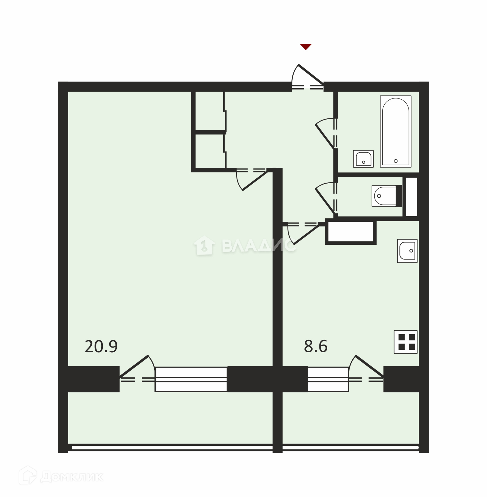 Жилая площадь 20.9 м2