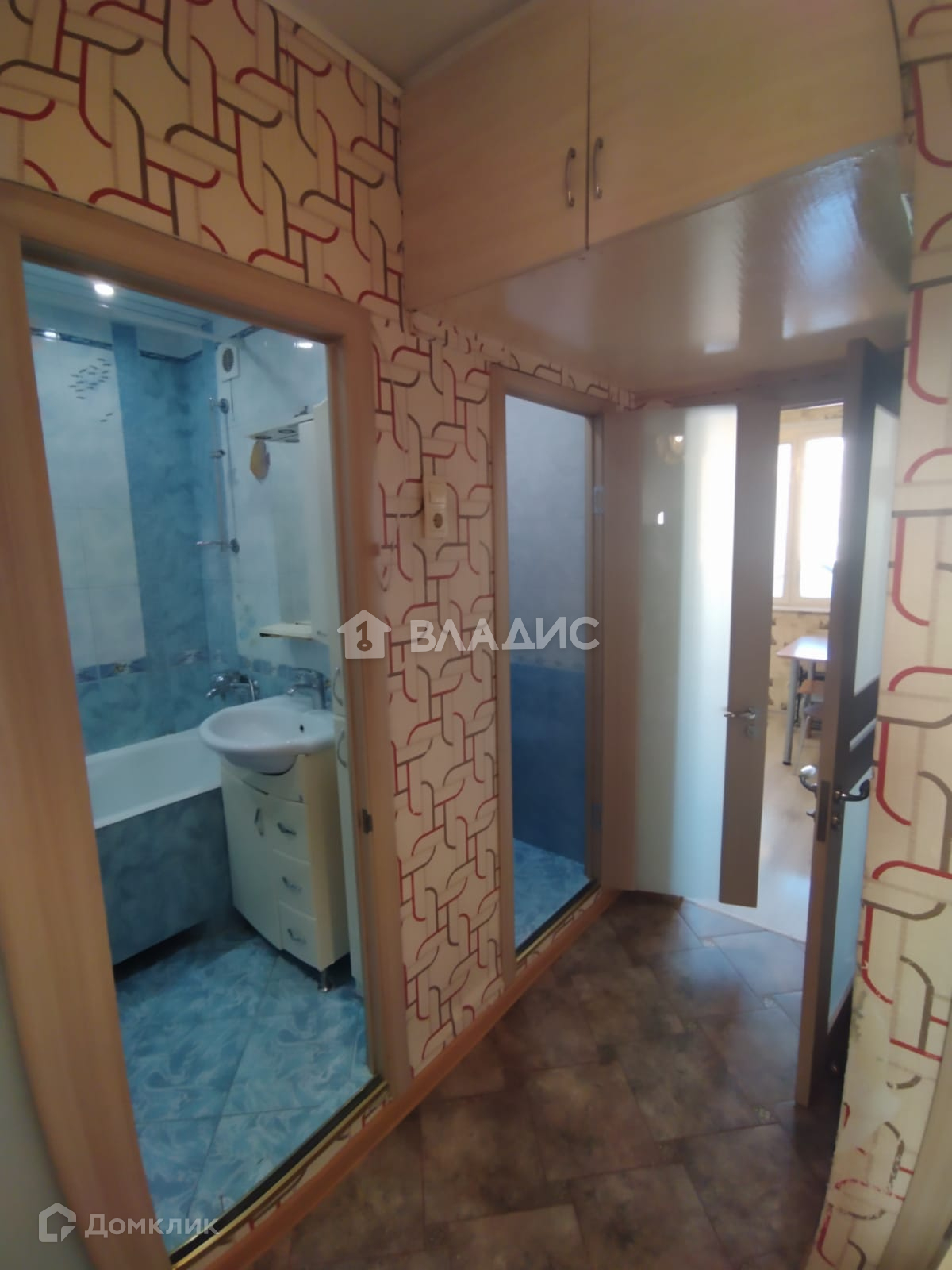 В коридоре, ванной, туалете на полу плитка.